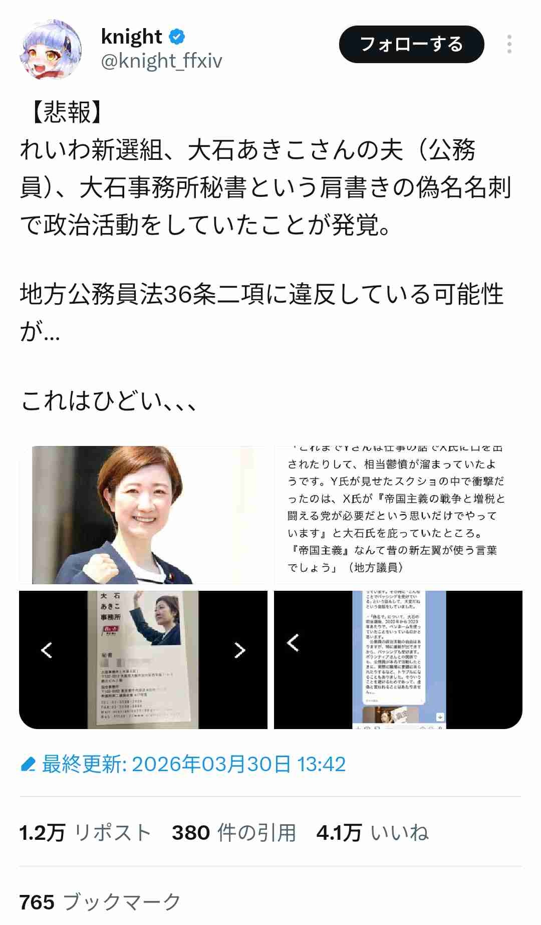 - れいわ新選組の大石オバチャンはもう政治生命終わるようなやらかしだもんなぁ
