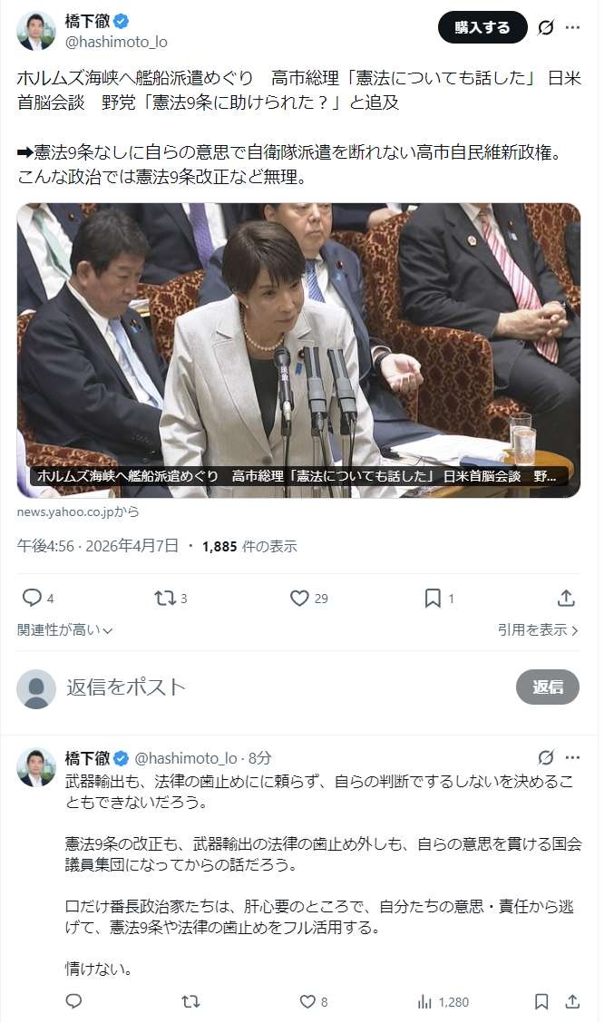 そして帰ってきたと思ったら改憲訴えてるとかゲェジかと思ったよ - 65 : 2026/04/07(火) 17:25:20.57 ID:qQtUBQ2A0