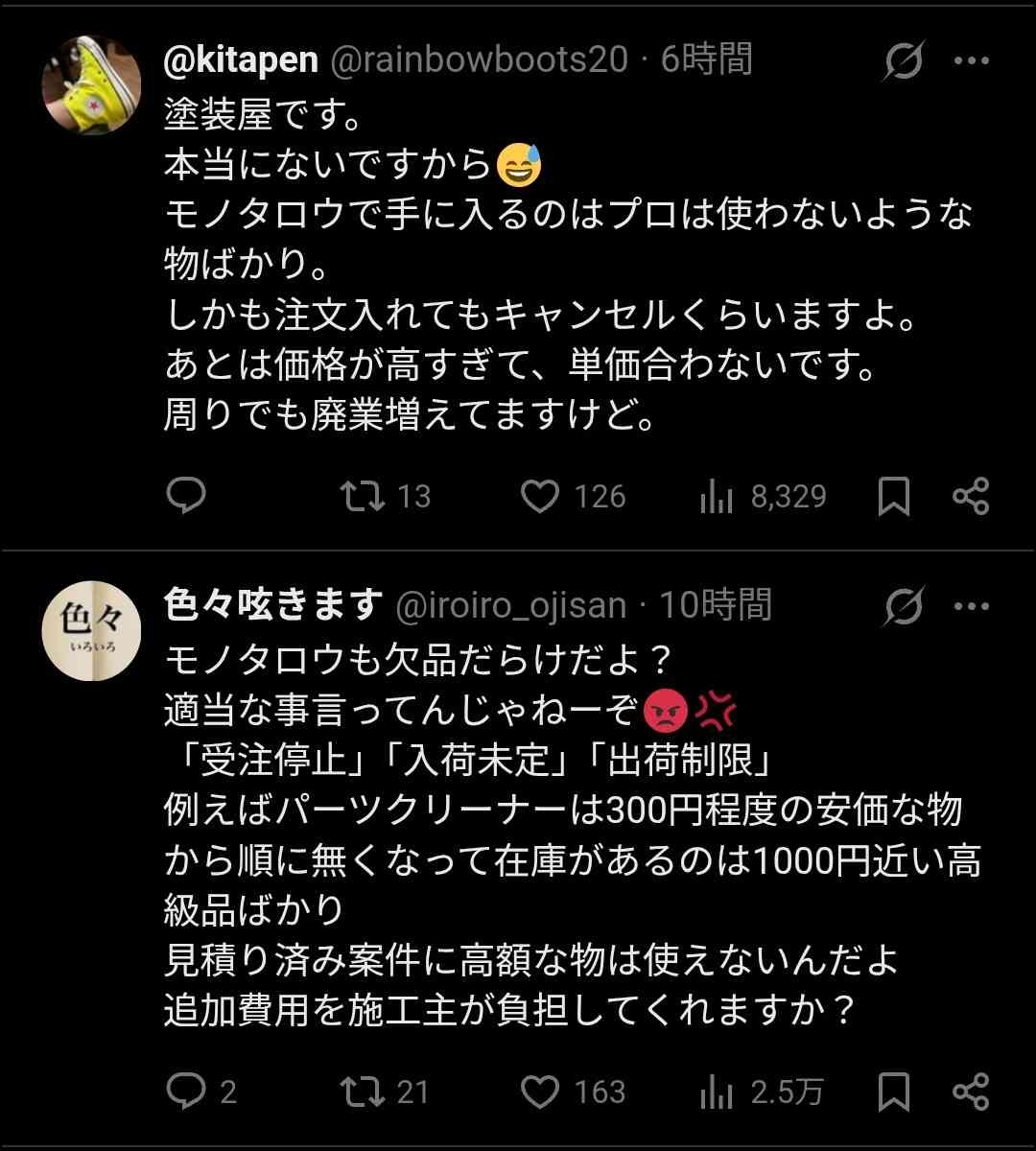 - モノタロウ在庫切れ話題になってなかった?