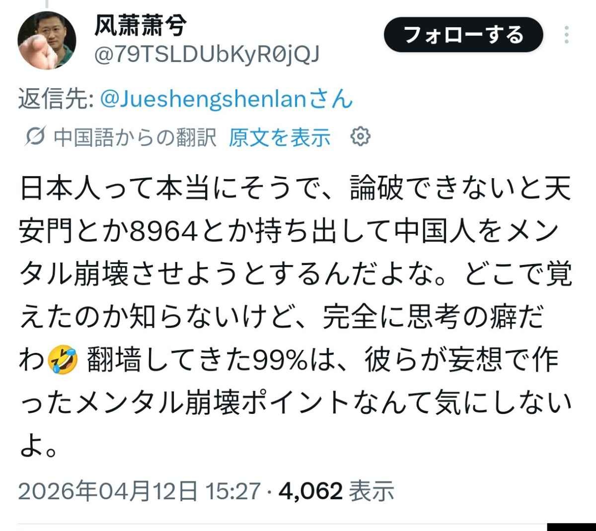 対中国人最強の切り札が効かない!?!?!? - 38 : 2026/04/13(月) 07:39:18.98 ID:krXh0v1Ed