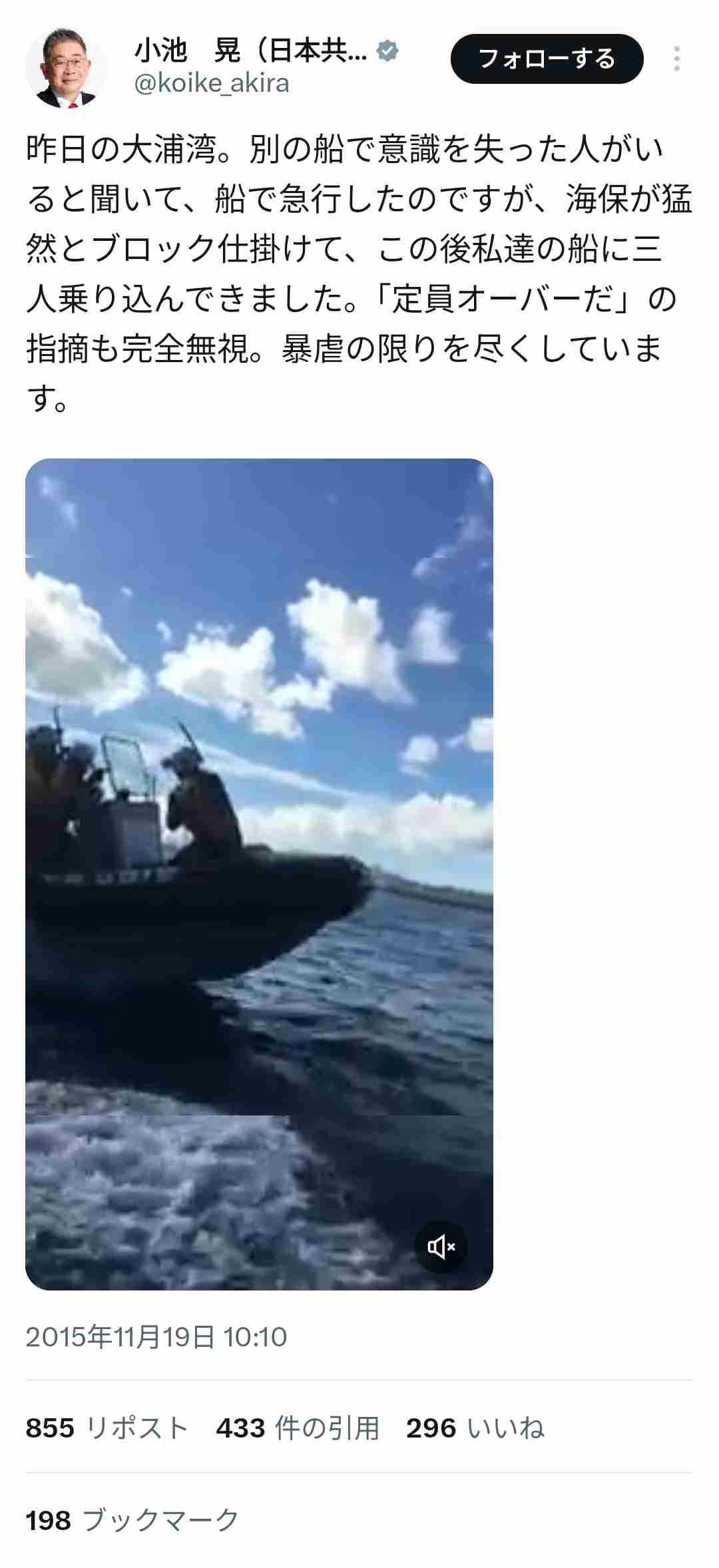 警戒中の海保職員の公務に重大な支障を生じせしめる暴挙に加担した小池の行動を要約するとこれでいいかな?