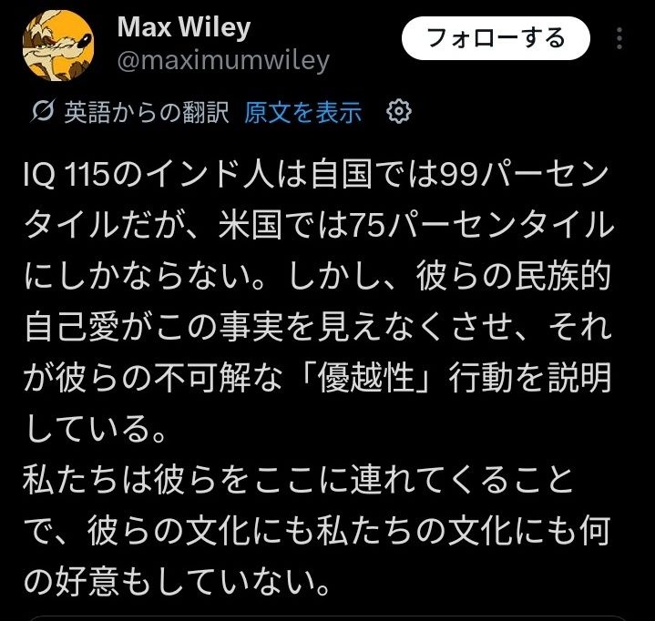 インド人のIQがさぁ!低くてさぁ!(白人至上主義) - 19 : 2026/04/16(木) 10:17:31.79 ID:QYcrtEyQ0