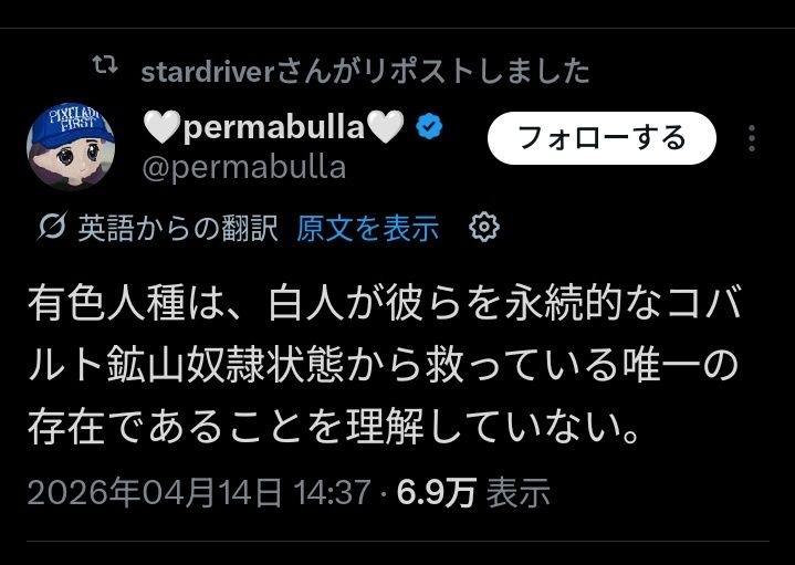 →白人至上主義者 - 2 : 2026/04/16(木) 10:05:10.40 ID:Tog/i9/u0