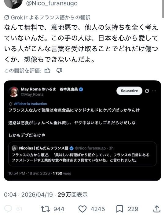 自分からフランス人に暴言浴びせて反論されてるだけやん - 30 : 2026/04/19(日) 10:25:10.60 ID:GMTQgnRI0