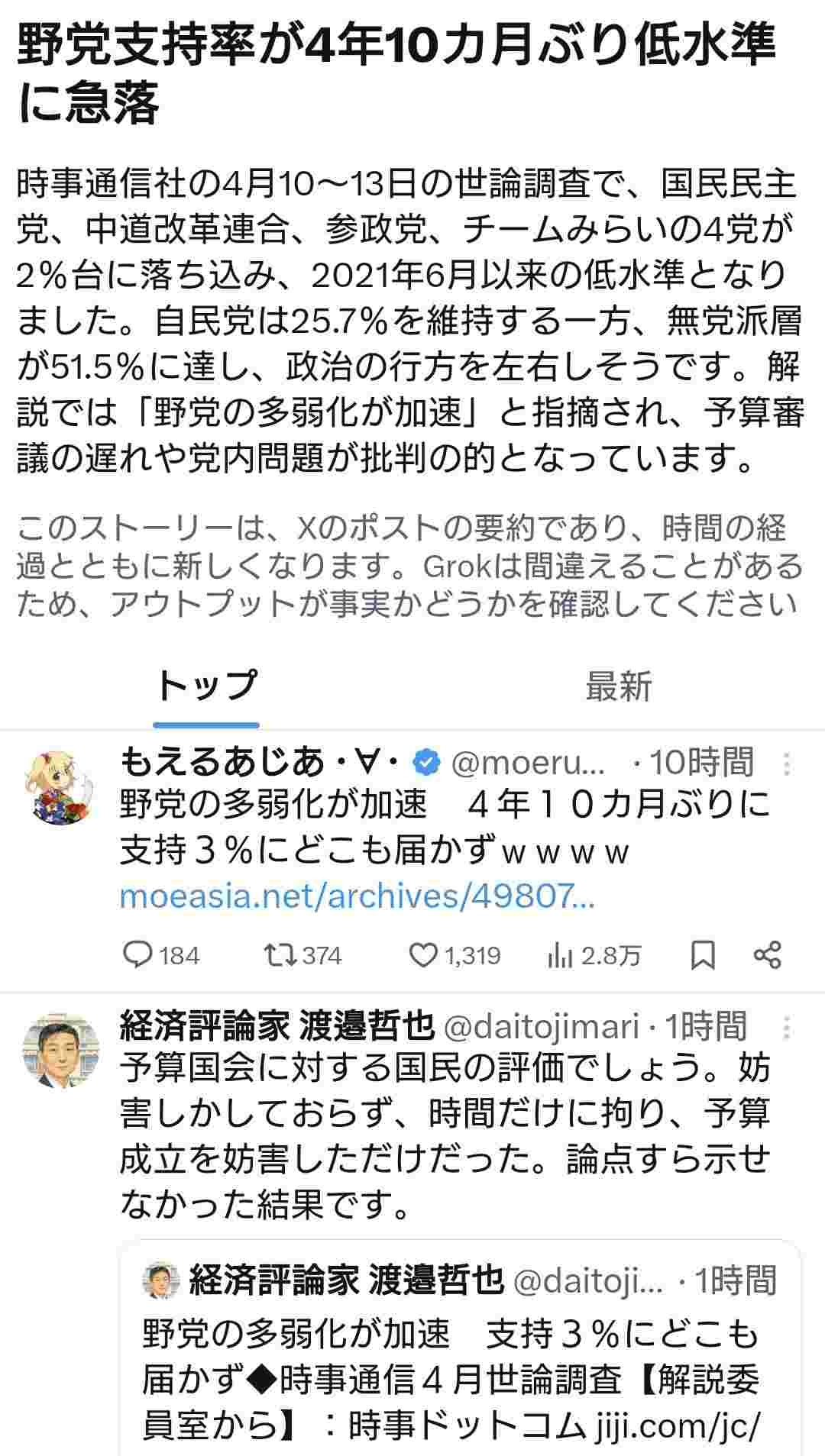 支持通信「支持率下げてやる!!」 - 8 : 2026/04/19(日) 20:35:54.31 ID:oUyTgRoo0