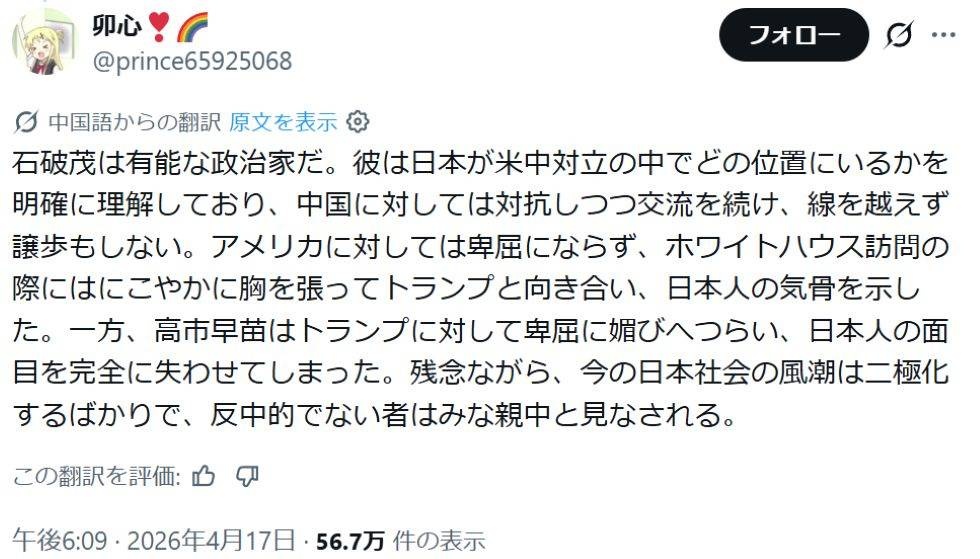 高市政権に意見するときは石破の悪口も言わないと中国人認定とかめんどくさすぎる
