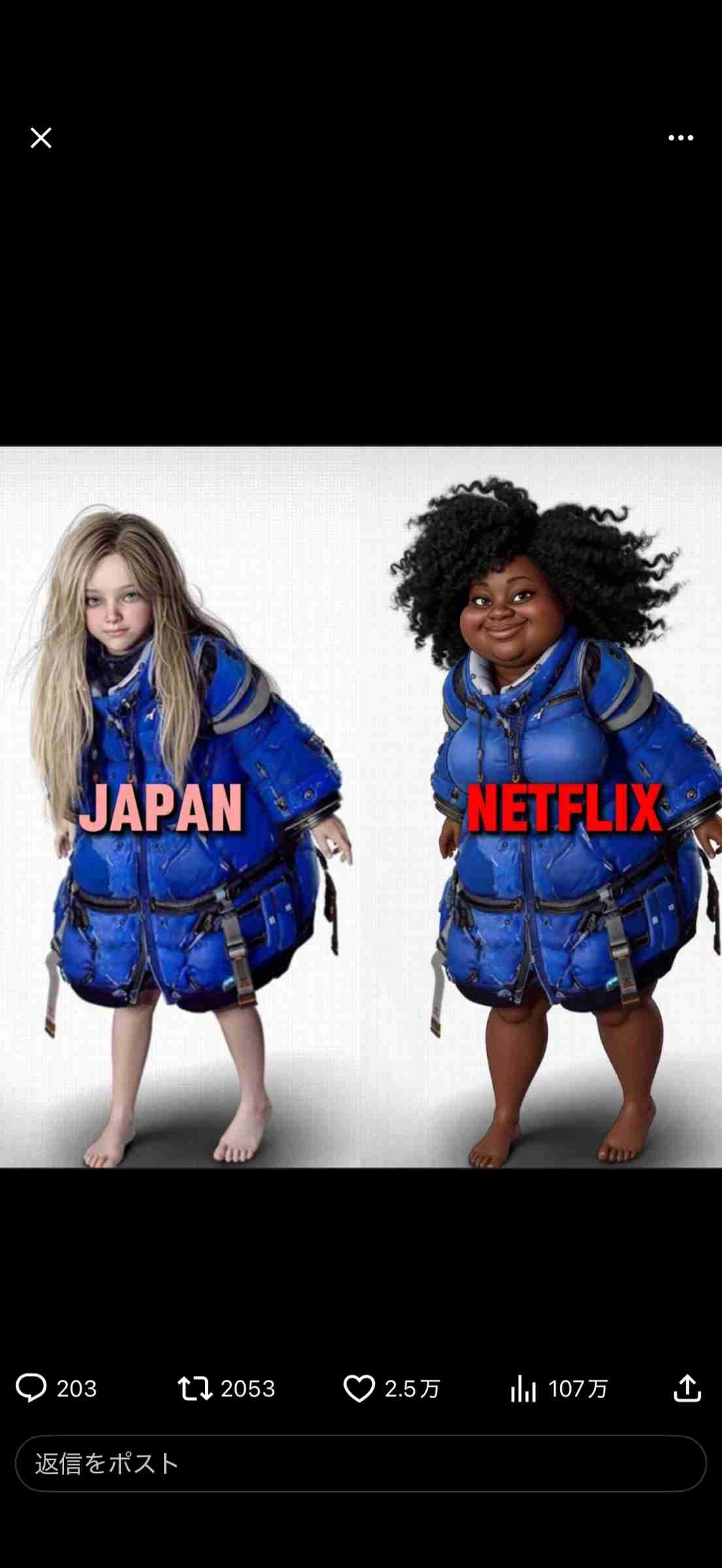 - これネトフリやポリコレへの皮肉だろ
