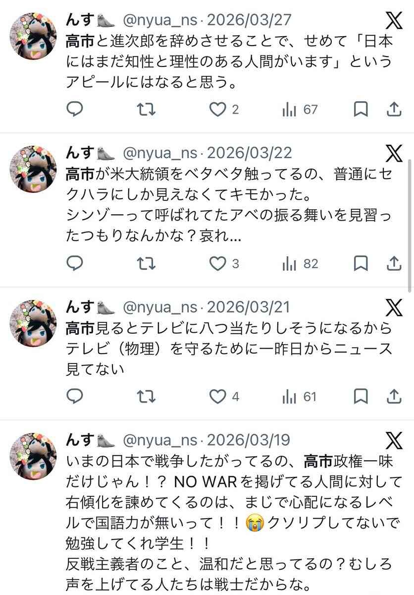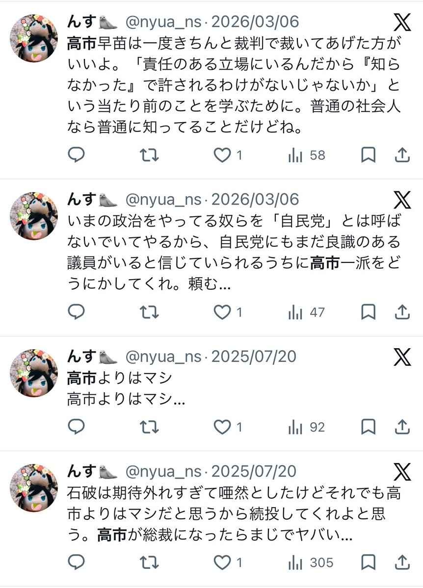 - アベガー高市ガーとかウザいやん