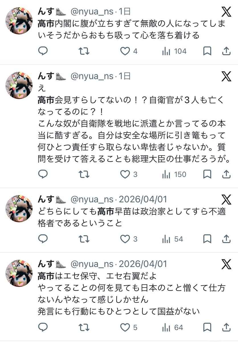 ただの誹謗中傷で政治の話なんてしてないからセーフ - 43 : 2026/04/24(金) 08:58:47.507 ID:bxs5ml1Tk