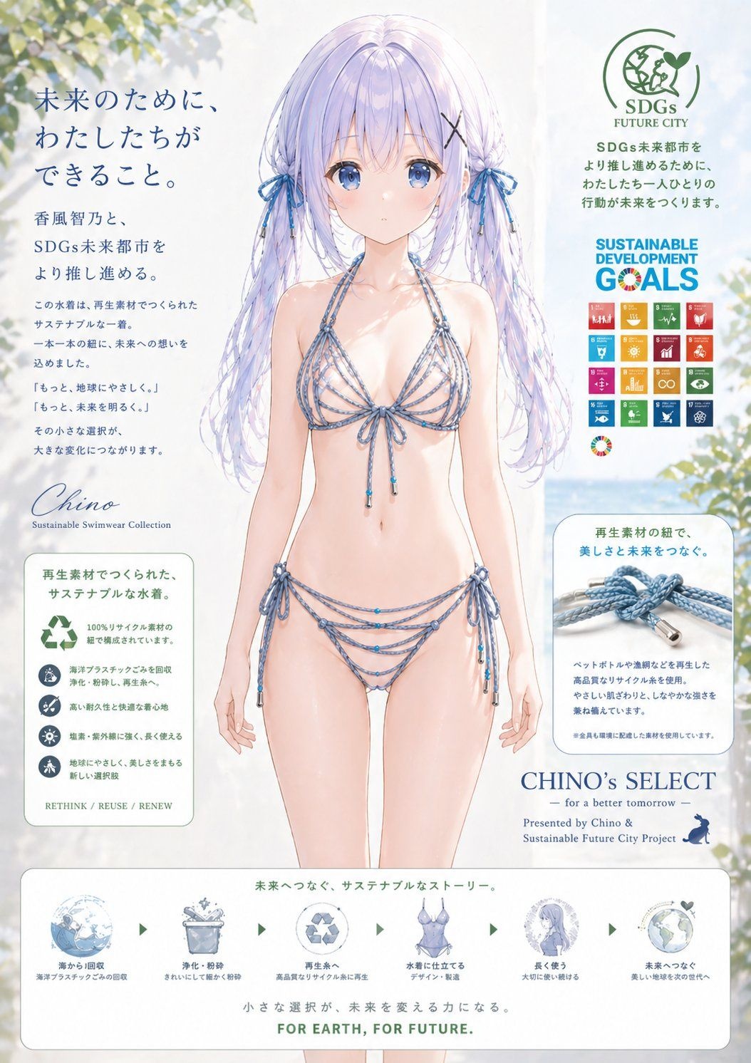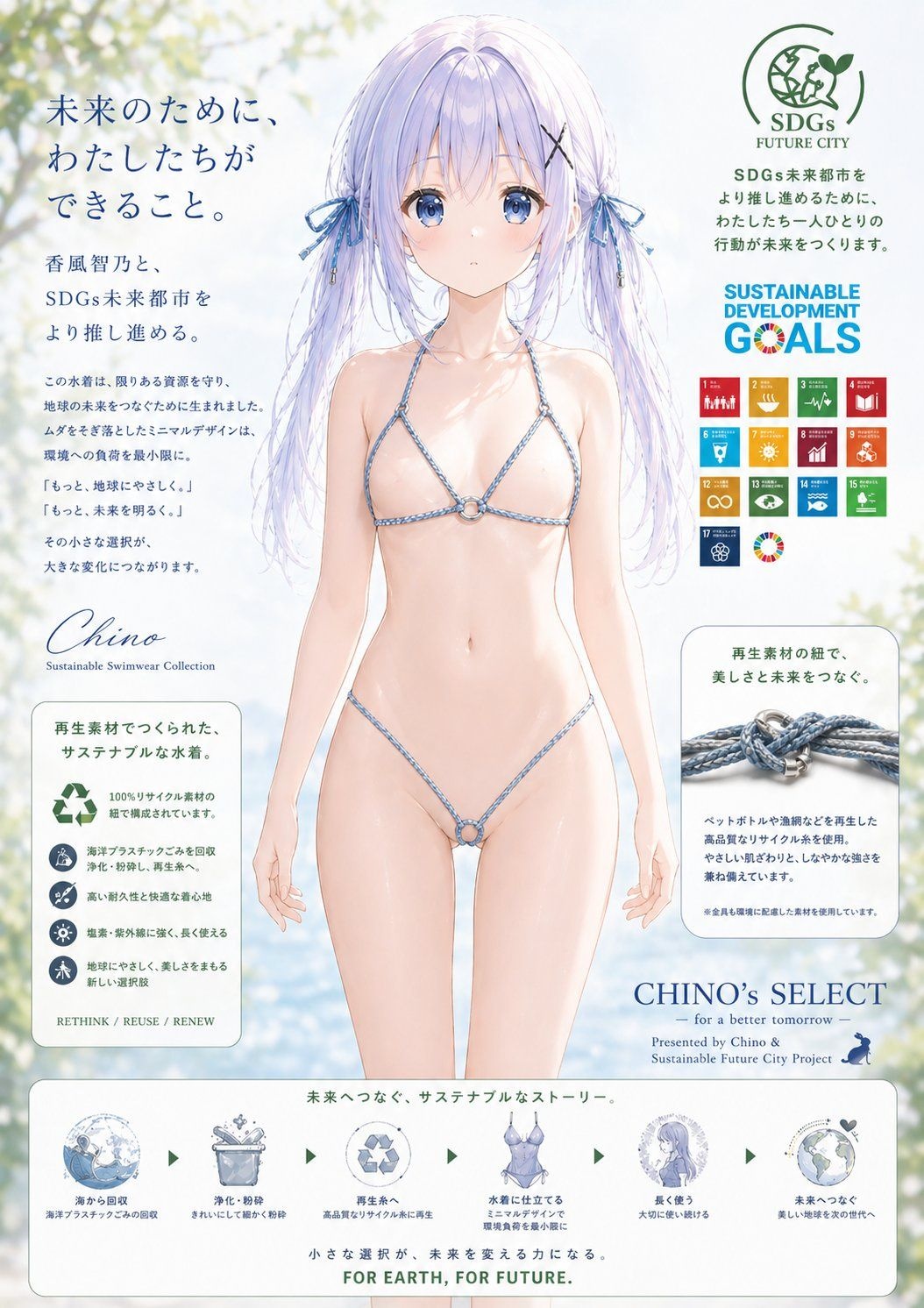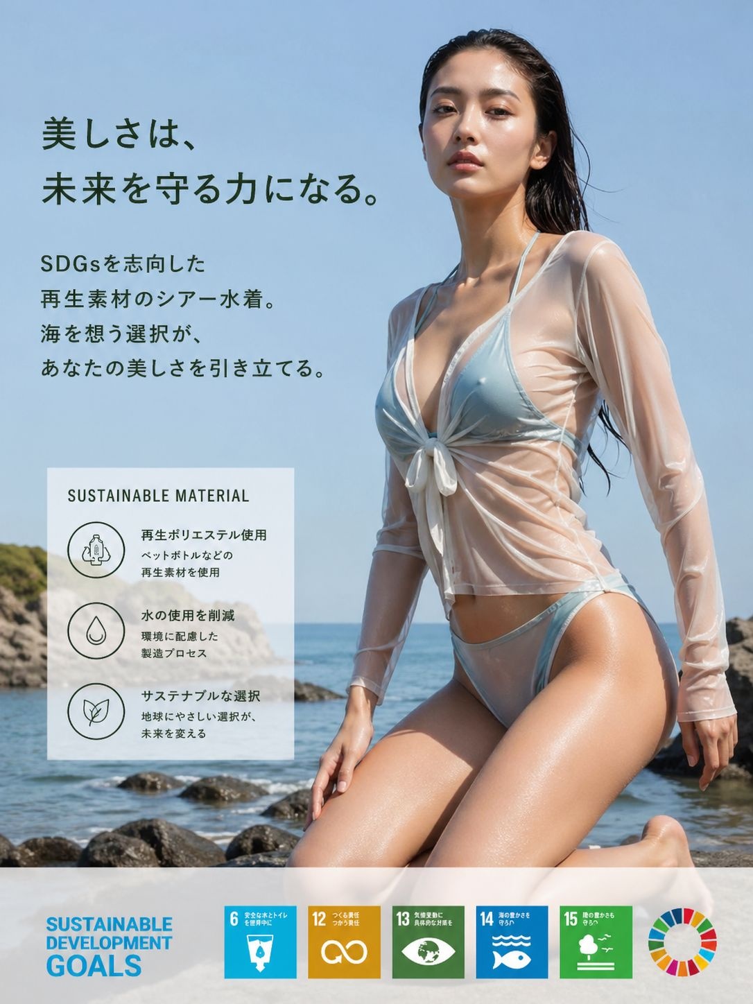 SDGsを志向した再生素材の紐で構成された水着の広告を作成してください - 17 : 2026/04/28(火) 14:48:30.607 ID:IurEgwmNW