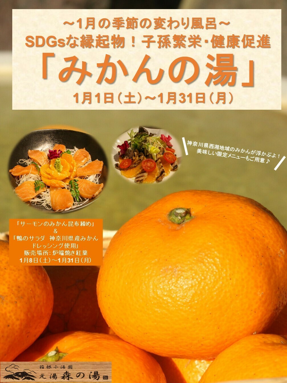 箱根最大級の本格日帰り温泉「箱根小涌園元湯 森の湯」では、2021年からフードロス削減と地元の旬の恵みを広く知ってもらう機会として「SDGsな変わり風呂」をスタート。