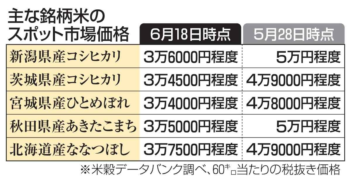 新潟コシヒカリ価格急落、3割安 備蓄米効果か、業者間取引で(共同通信) - Yahoo!ニュース卸売業者が銘柄米を日々取引しているスポット市場で、新潟県産コシヒカリなどの価格が直近のピークだった5月下旬から約3割下落したことが18日、コメ市場を調査している米穀データバンクの調べで分かった。備news.yahoo.co.jp - 4 : 2025/06/19(木) 08:04:46.128 ID:KHVOCyzOg