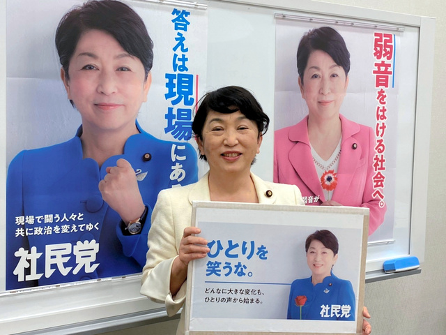 党勢については「崖っぷちだ。社民党を無くしたら日本は滅ぶ」と述べたが、比例代表の投票先は「大椿裕子かラサール石井。社民党でもいい。この際、れいわ新選組でもいいよ」と訴えた。(奥原慎平)