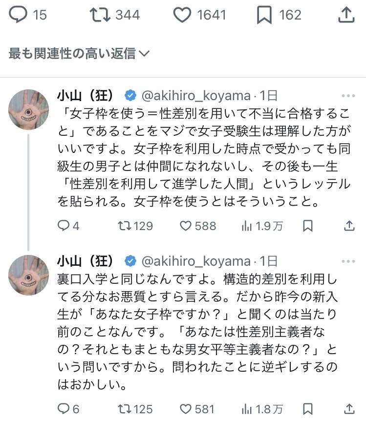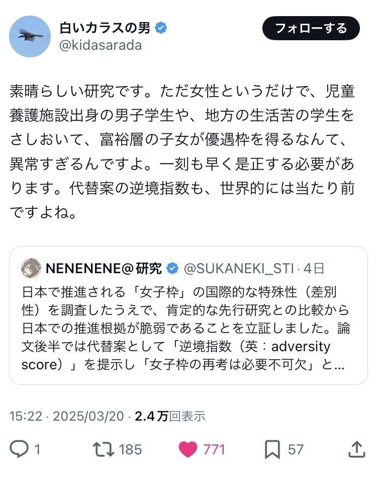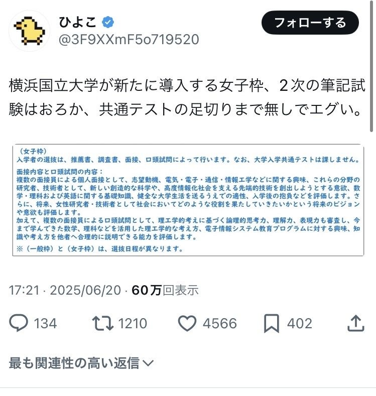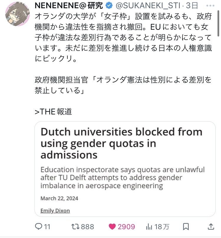 - 当の一流大学の在学生もみんな「女子枠」をメチャクチャ憎んでいるとのこと