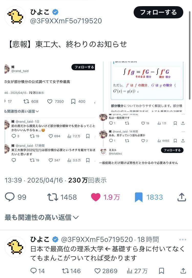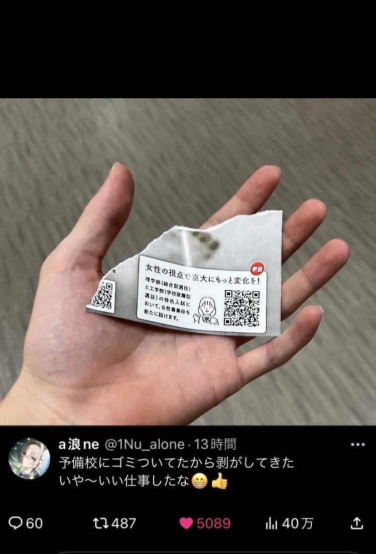 「男は激ムズ一般枠しか受けられへんで〜」「性別」という生まれながらの属性を理由に国内理系ナンバーワン大学がこの差別