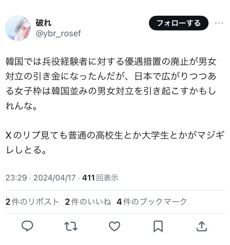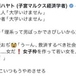 - マジで「難関大学女子枠」のせいで若い世代の男女対立が韓国並みになりそう