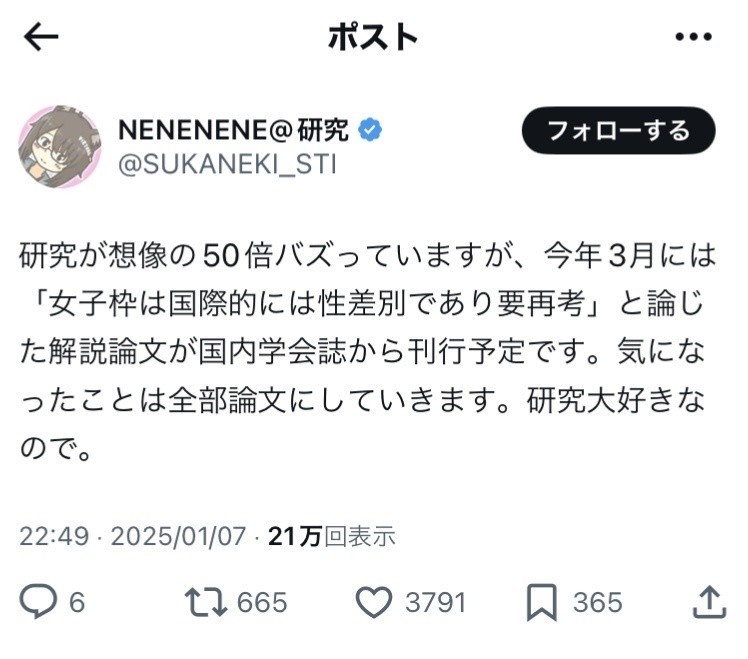 - 女子枠の差別性・違法性を指摘する査読付き論文も出版された模様