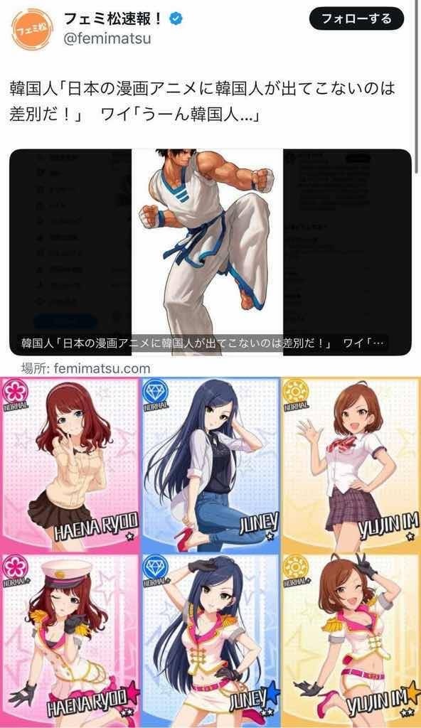 - ストIIも韓国キャラが出てこないのは差別ニダ!って言われて次作以降キャラ作ったんだっけ?