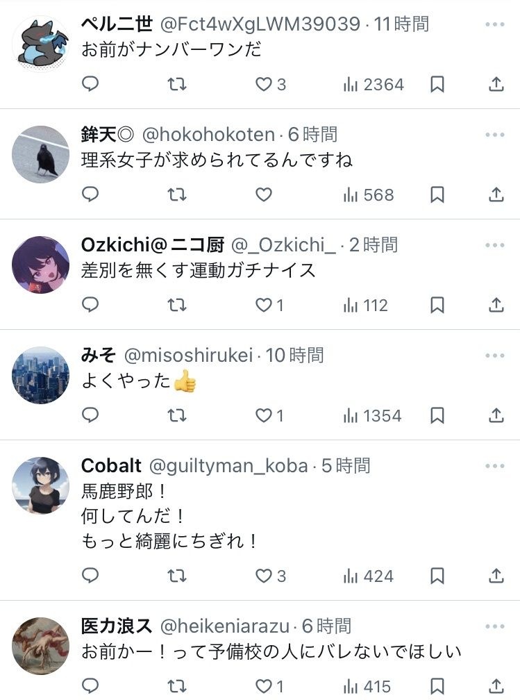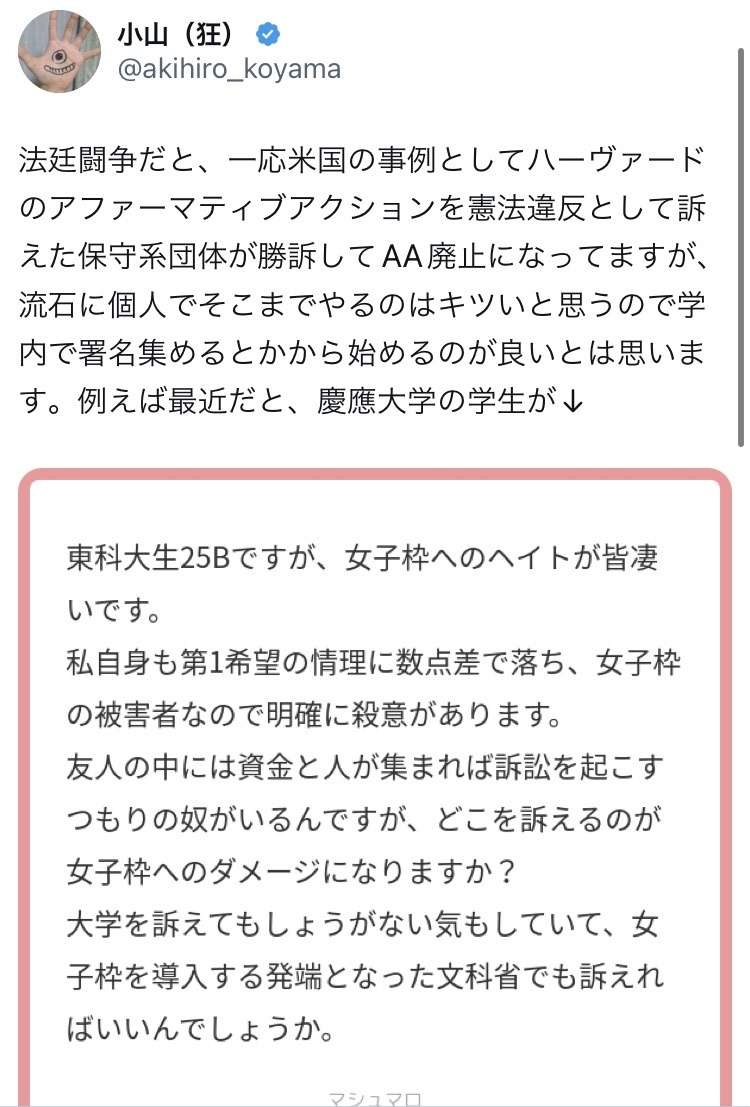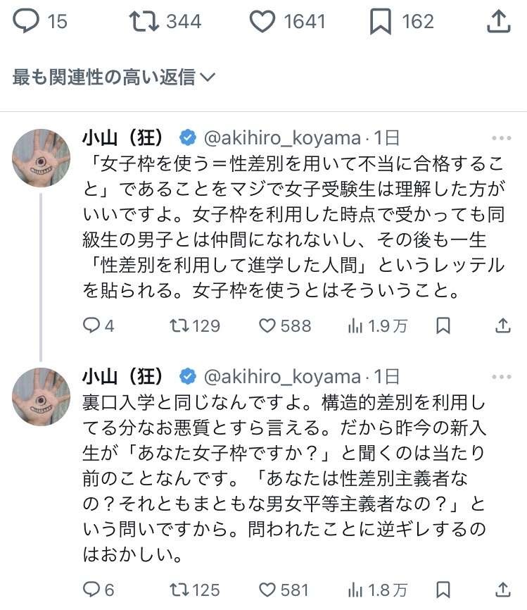 - 当の大学の在学生もみんな「女子枠」をメチャクチャ憎んでいるとのこと