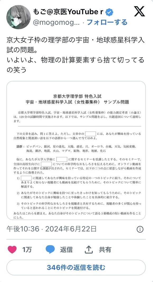 「男は激ムズ一般枠しか受けられへんで〜」「性別」という生まれながらの属性を理由に国内理系ナンバーワン大学がこの差別