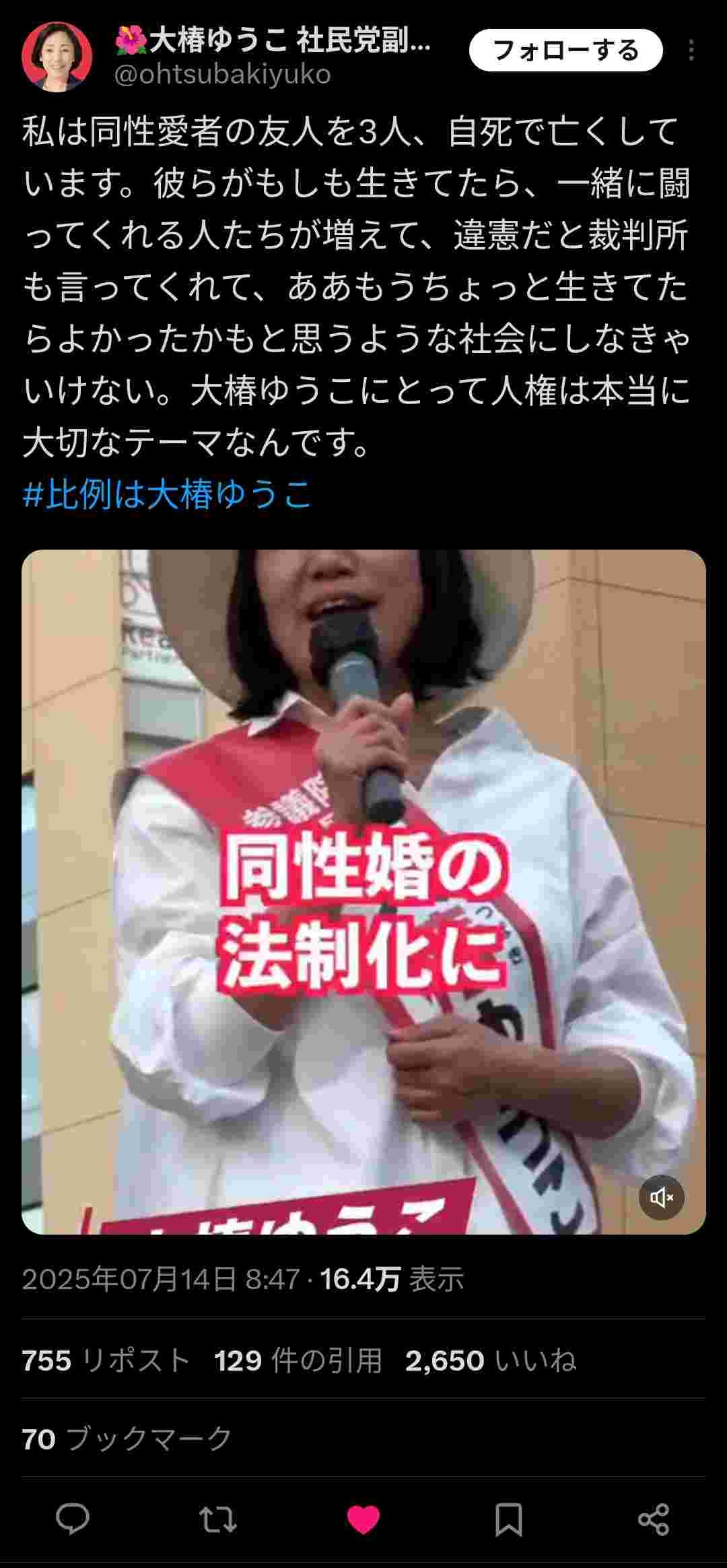 - ●大椿ゆうこ 社民党副…@ohtsubakiyuko