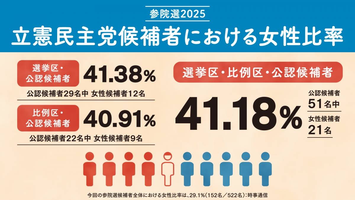 【ジェンダー】参院選2025における立憲民主党の女性候補者比率は4割超