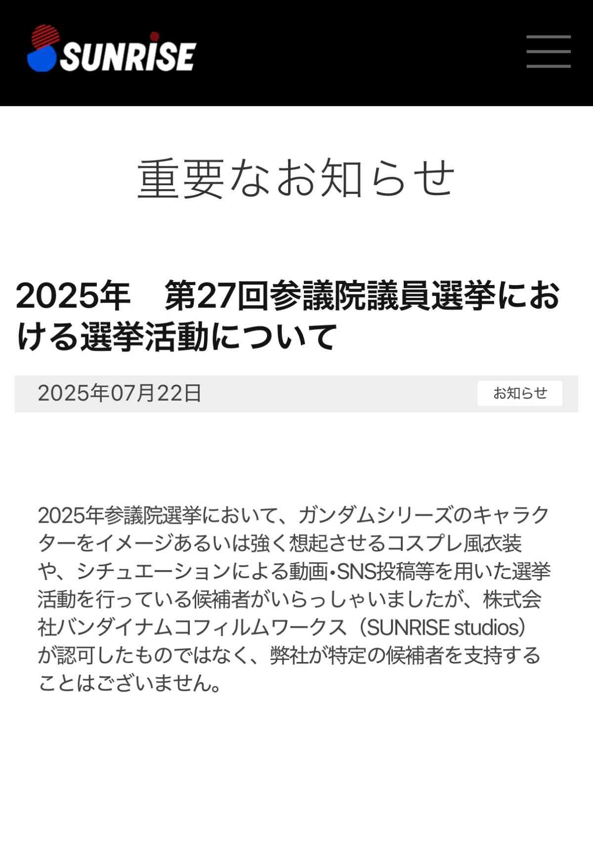 - は?マジかよ!サンライズのためにれいわに投票したのによぉ!!!詐欺じゃねぇかよ!