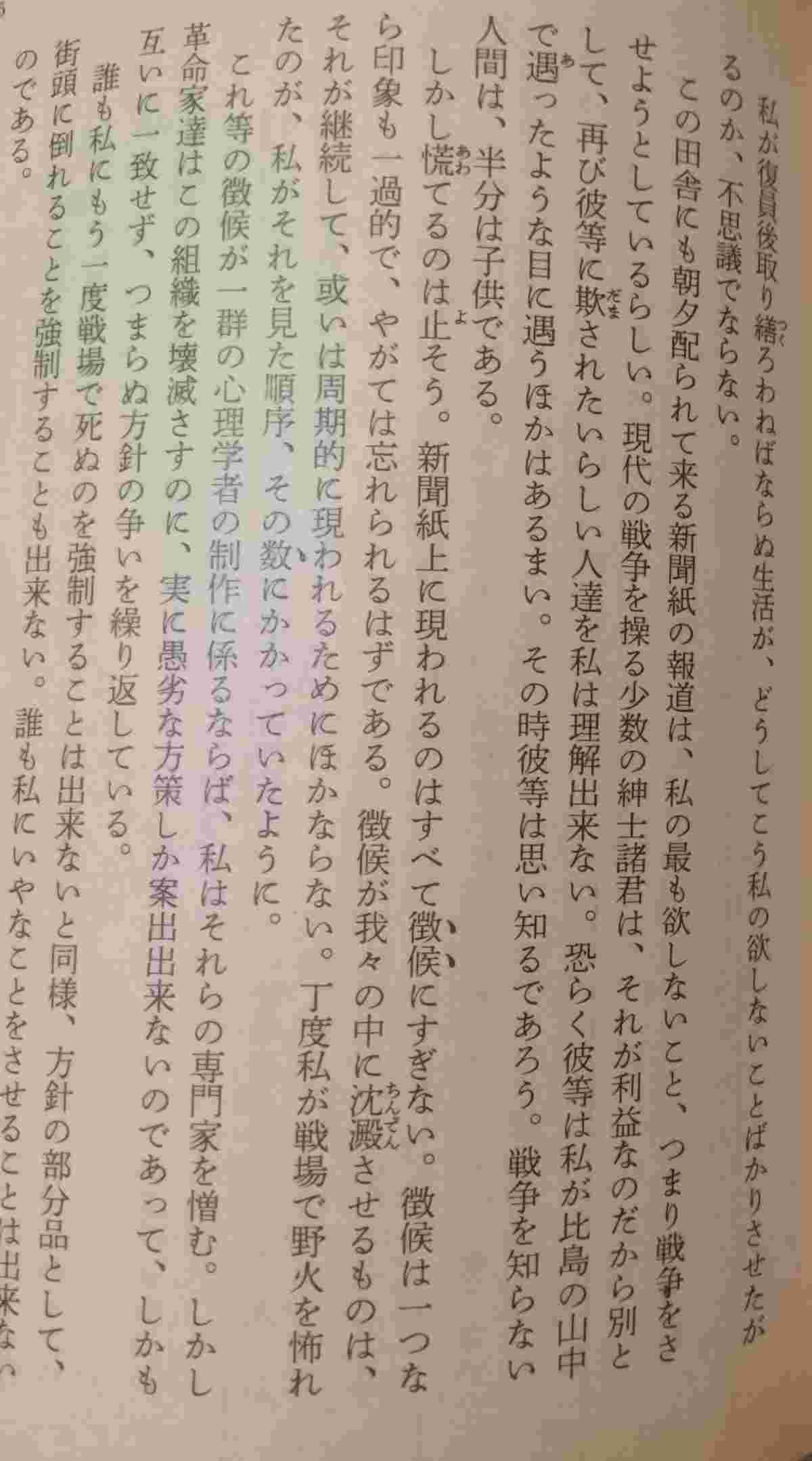 その時彼等は思い知るであろう。戦争を知らない人間は、半分は子供である。』『野火・狂人日記』(大岡昇平)