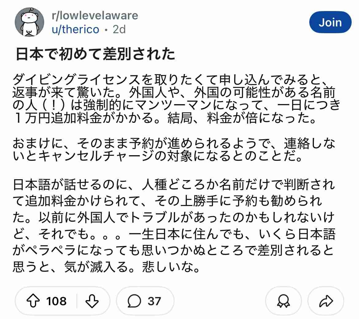 当然差別に当たるが裁判とか起こすやつも居ないからまかり通ってる - 87 : 2025/07/24(木) 19:59:17.48 ID:7+Hmsonk0