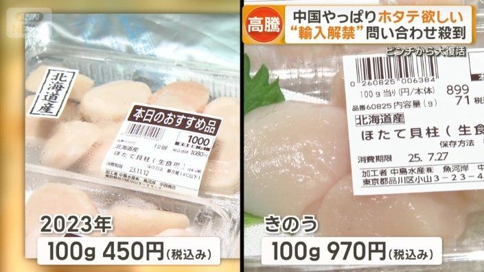 - 世界的な需要が増して、日本のホタテがここ10年で最も高くなっています。先月、中国が日本産の海産物の輸入を一部解禁したため、さらにホタテの価格が高騰しそうです。