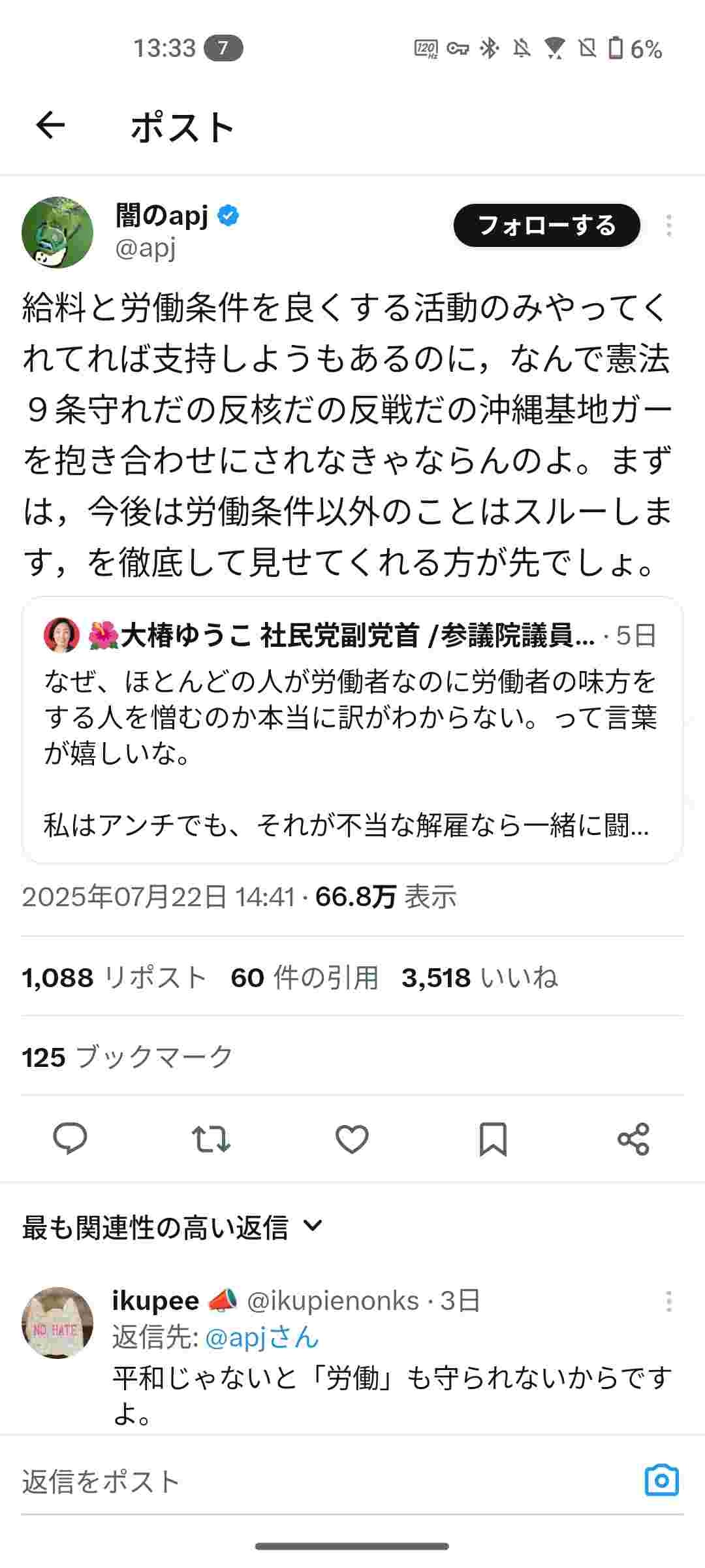嫌なら自分で反戦反核なしの労働運動始めろや - 97 : 2025/07/26(土) 13:45:29.77 ID:OFMOstTG0