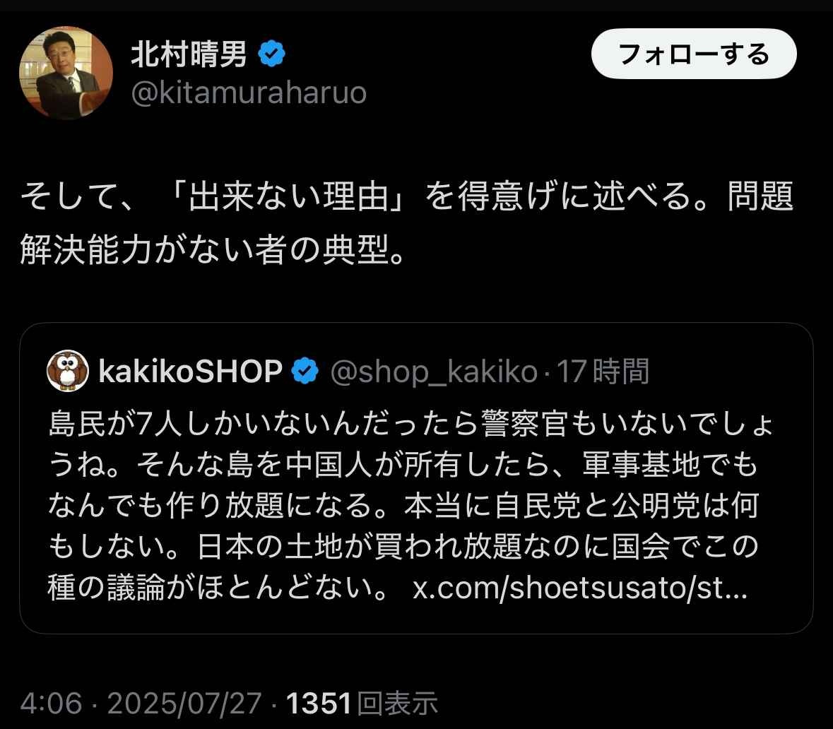 - ここまでただのネトウヨジジイと同じムーブなんよなぁ。これならマジで北村でなくてよかったんよ