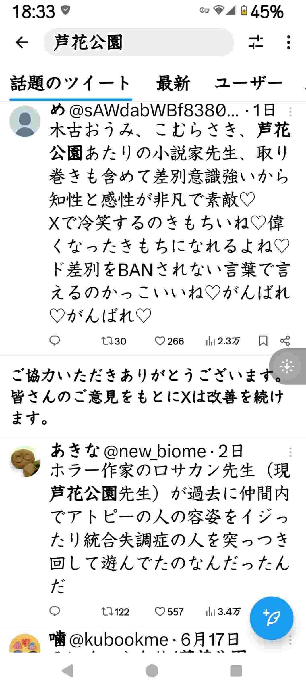 - 芦花公園ってもともと暇空とかと同じ界隈にいたツイッタラーだからな
