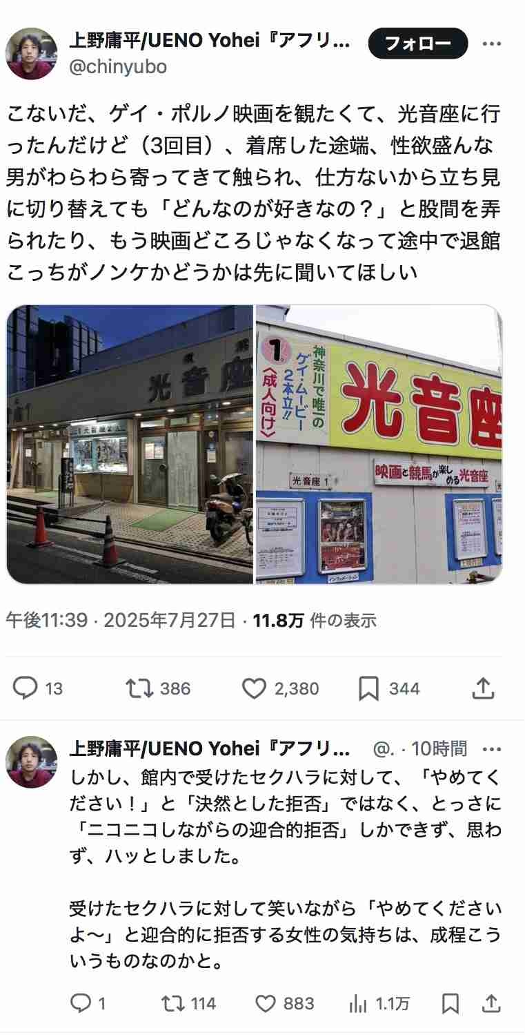発展場になってる映画館とかしかやってないことがあるからな - 26 : 2025/07/28(月) 19:13:44.55 ID:y0ZIZLzu0