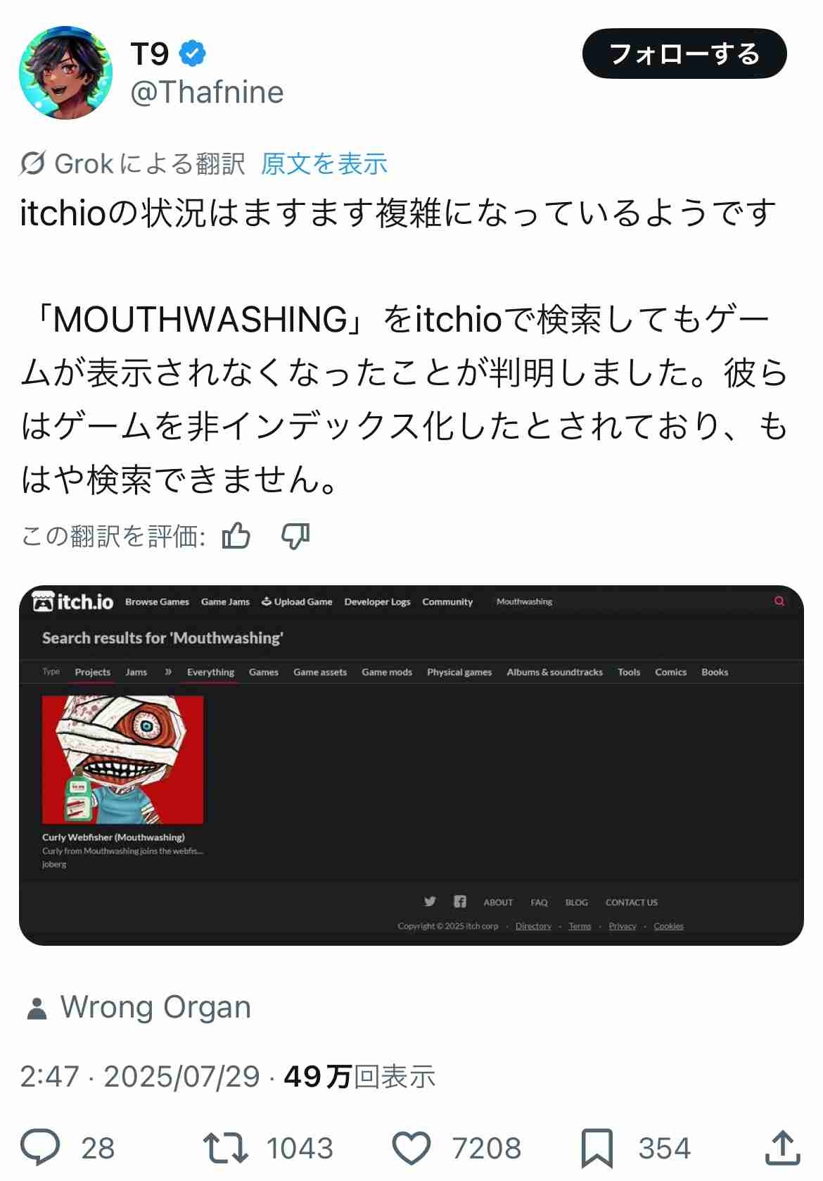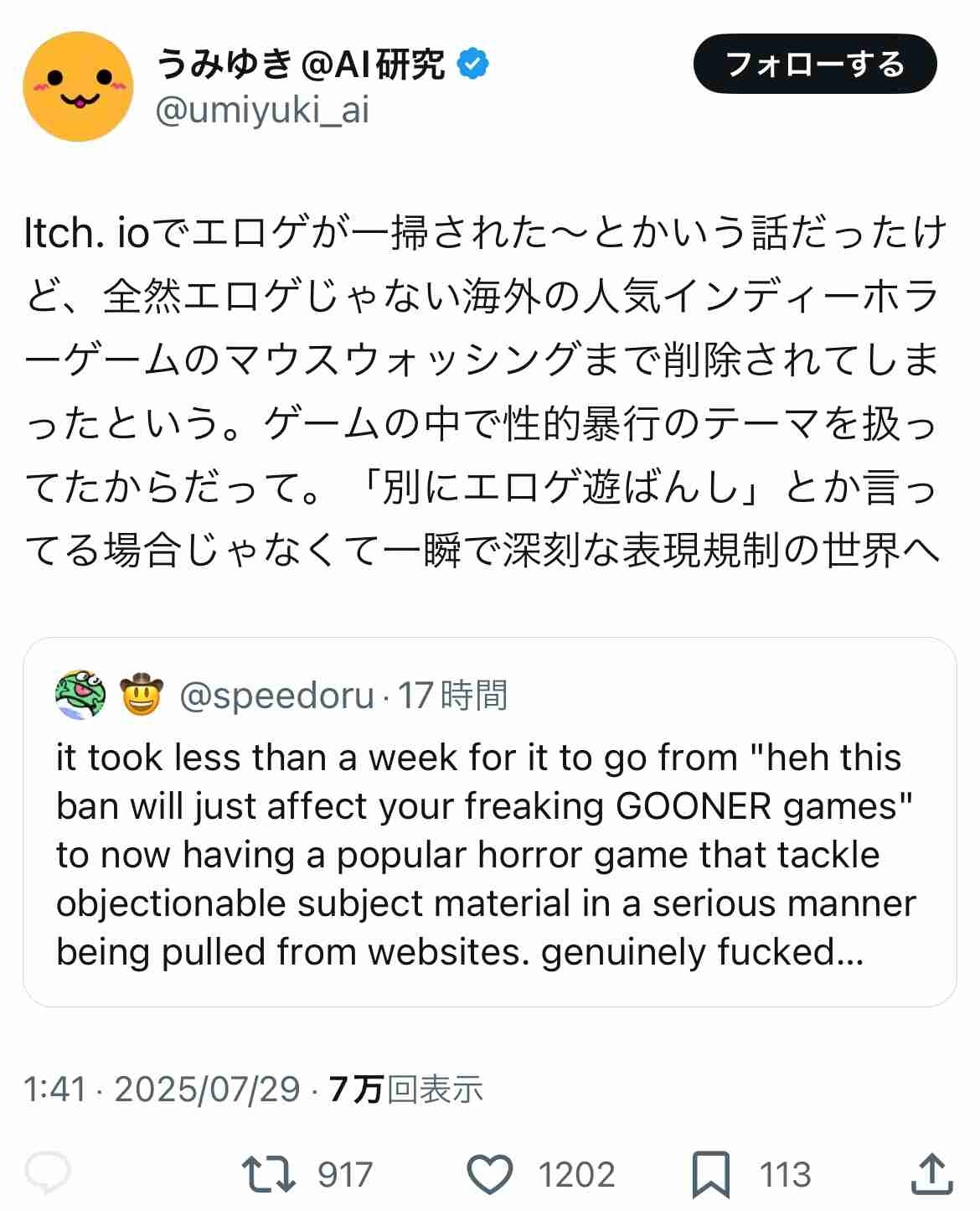 これでban食らうなら今後望まないセクロスと妊娠したキャラが出るゲームは全部banされかねない - 6 : 2025/07/29(火) 14:44:29.61 ID:jlLlOoTq0NIKU