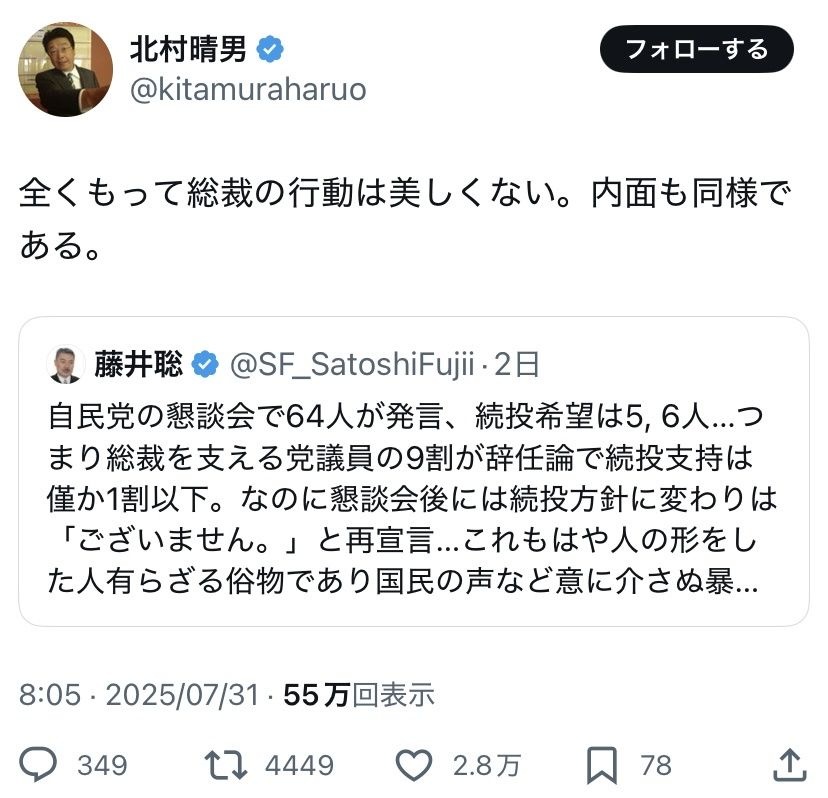 - 醜態晒す生き恥老害北村晴ウヨ