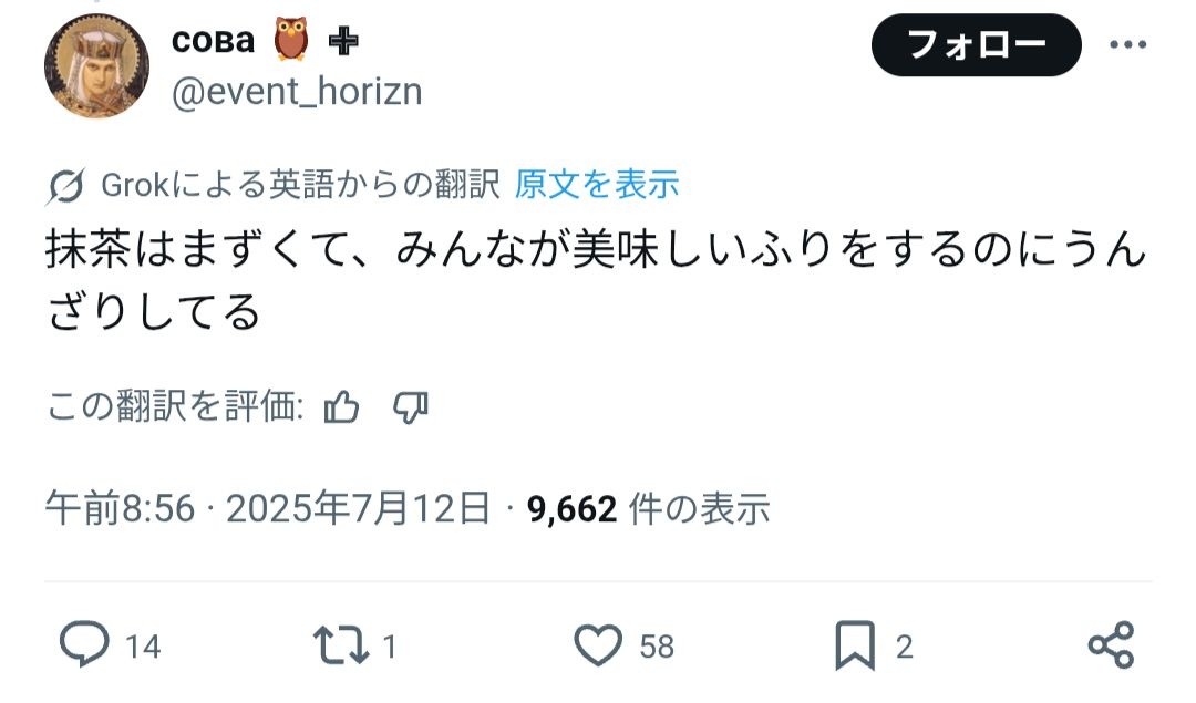 - 抹茶流行を冷笑は流石に無理があるやろゲェジんども