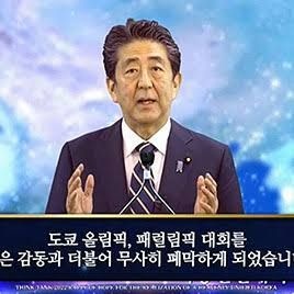 - 安倍晋三のスピーチ(ハングルの字幕)