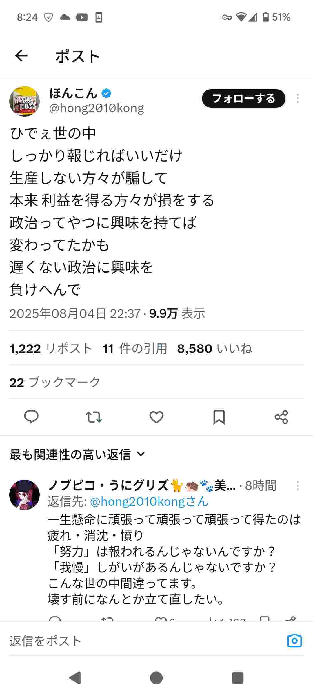 ほんこんさんのそのメッセージ伝わったよ - 60 : 2025/08/05(火) 08:31:22.47 ID:zH4ARs8T0