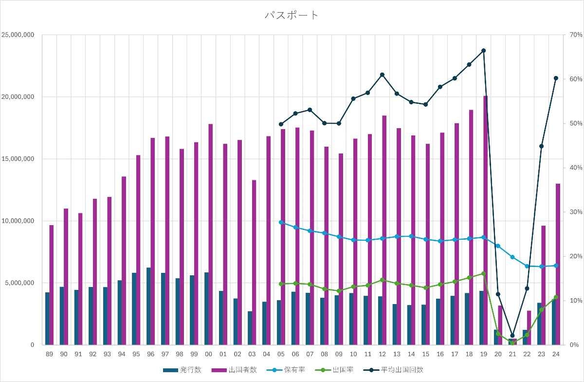 - そもそも海外旅行した人数は2019年が最高、パスポート保有率は2005年が最高なんだよ