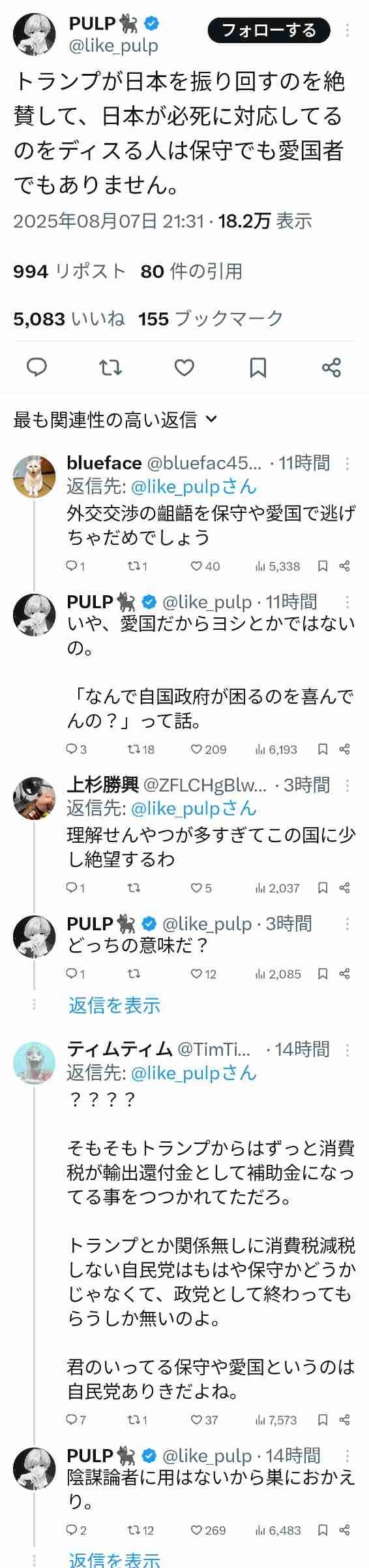 トランプにいいようにされてきた無能のくせに国内向けだけにイキってるゴミクズ - 89 : 2025/08/08(金) 12:41:10.03 ID:JRo00I+n00808