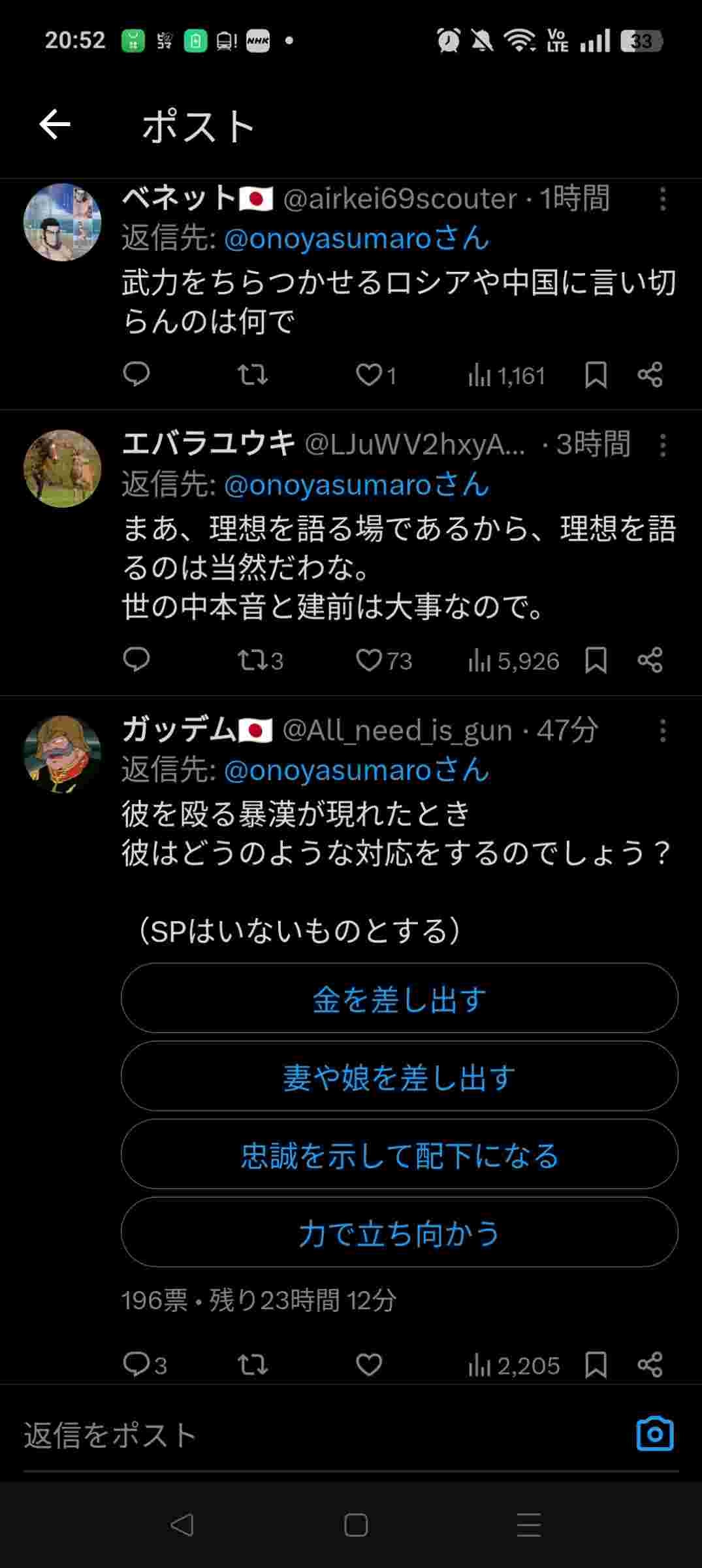- 武力で来る相手に言えや←こういう意見のガチモン感