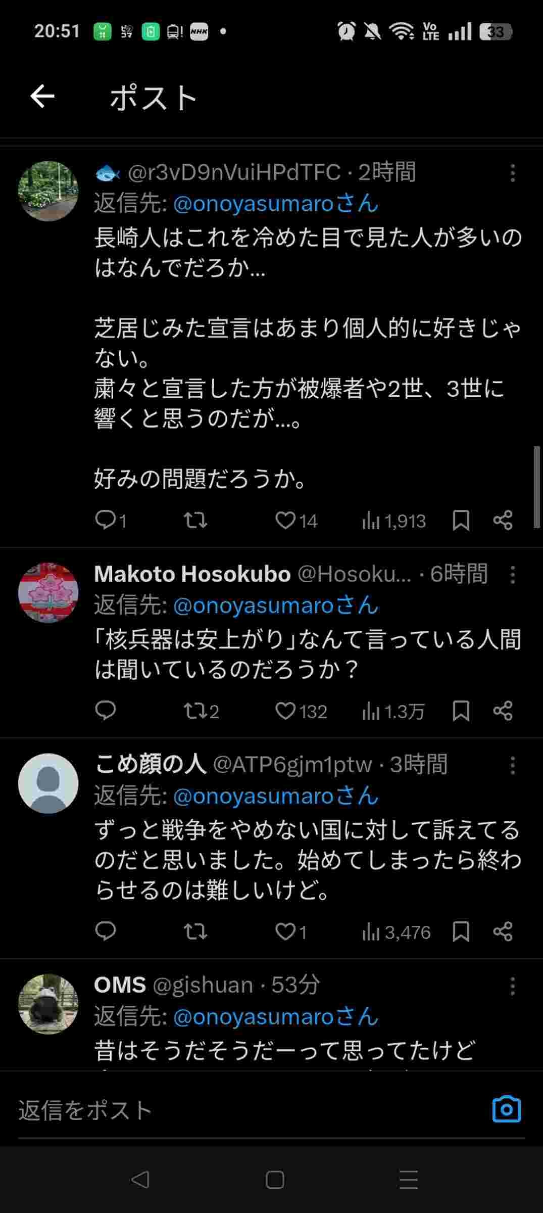 - 単にキチゲ発散しまくってるイスラエルやロシアとかその行為に賛同してる奴らに対して敗戦国かつ被爆国としての立場で言ってるだけちゃうんか