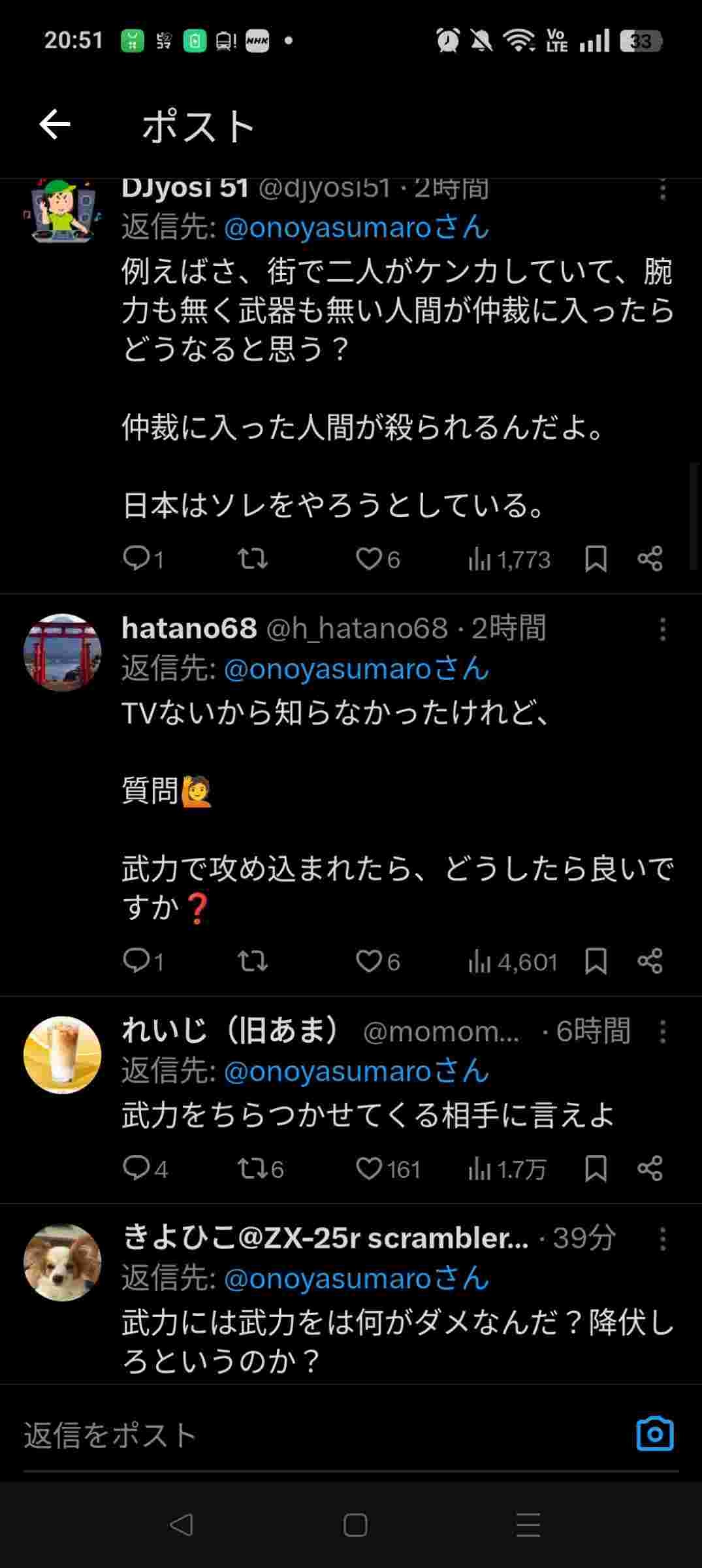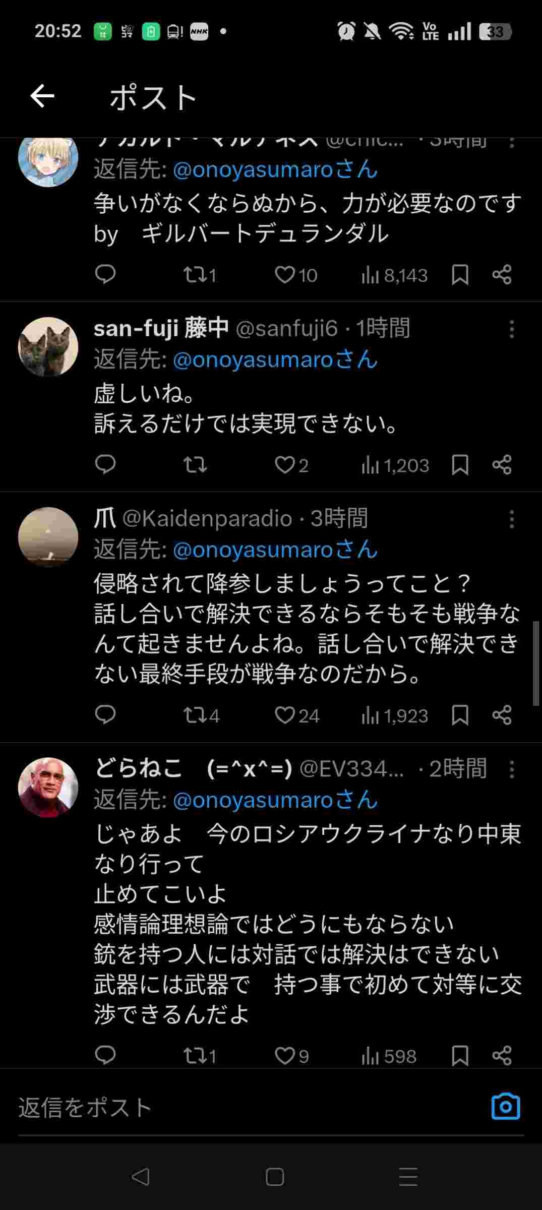 - そもそも武力で争うなて言うてるだけなんやから相手は武力で攻めてくるからどうこうてほんまに的外れな反論で草