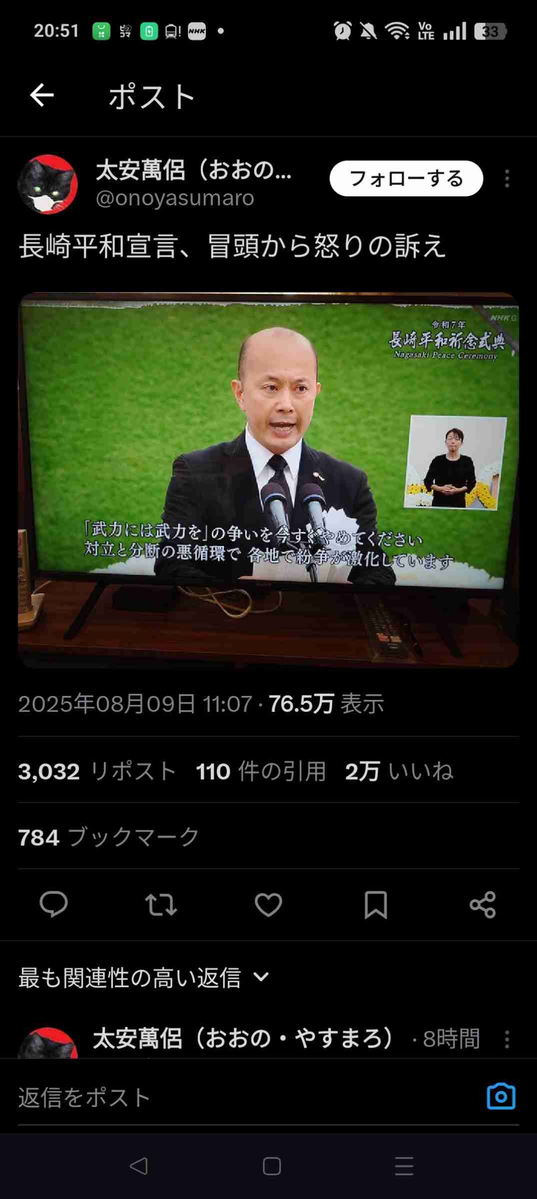 平和すぎてアホになったんやろな - 94 : 2025/08/09(土) 21:16:12.901 ID:ZOKuVotpm