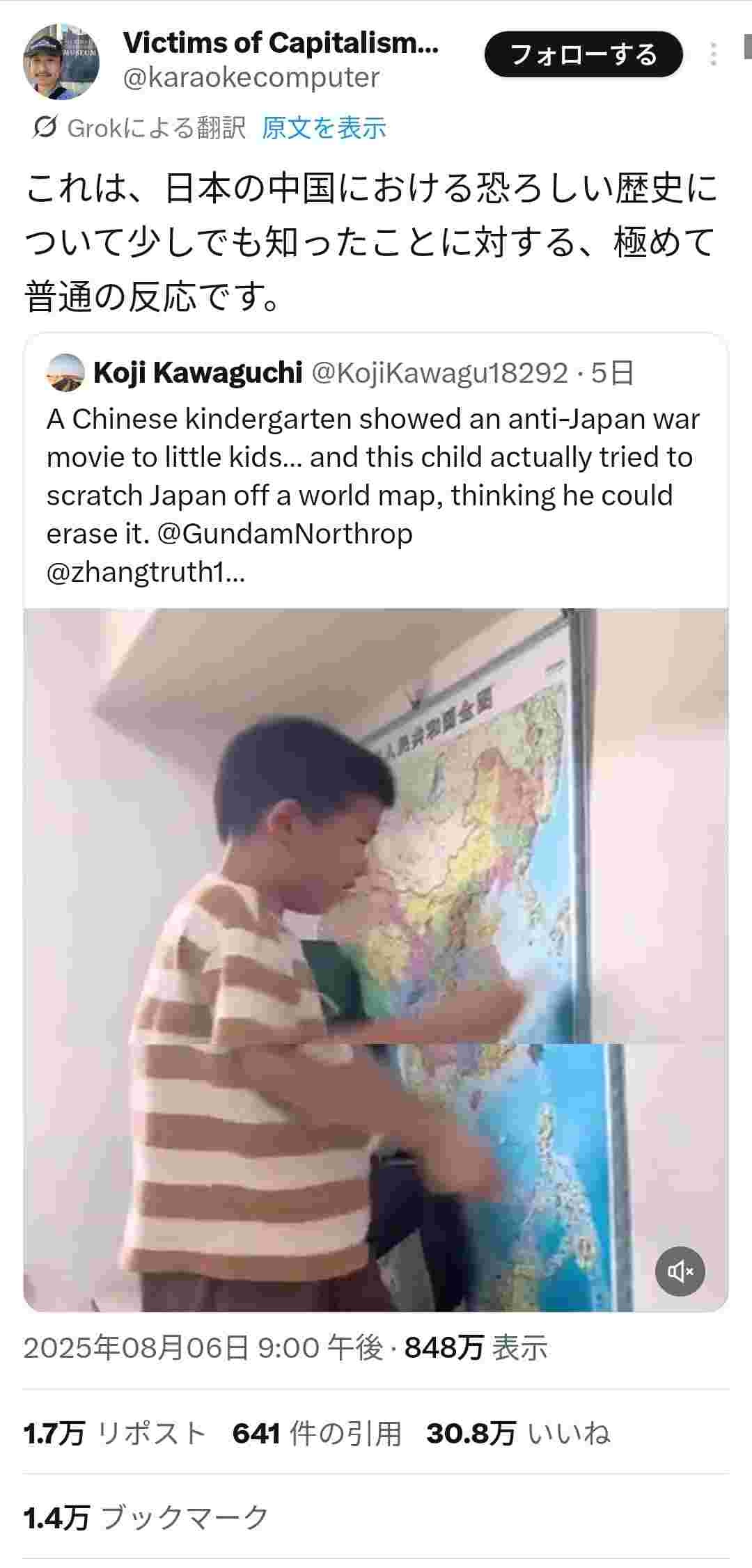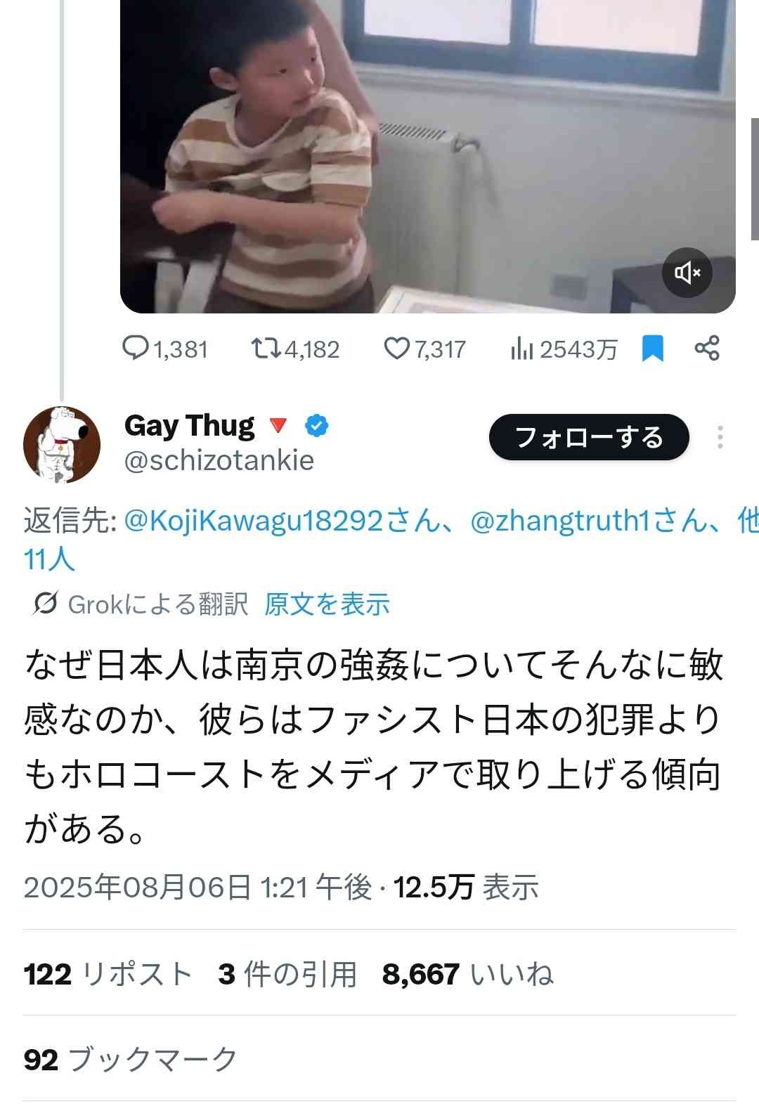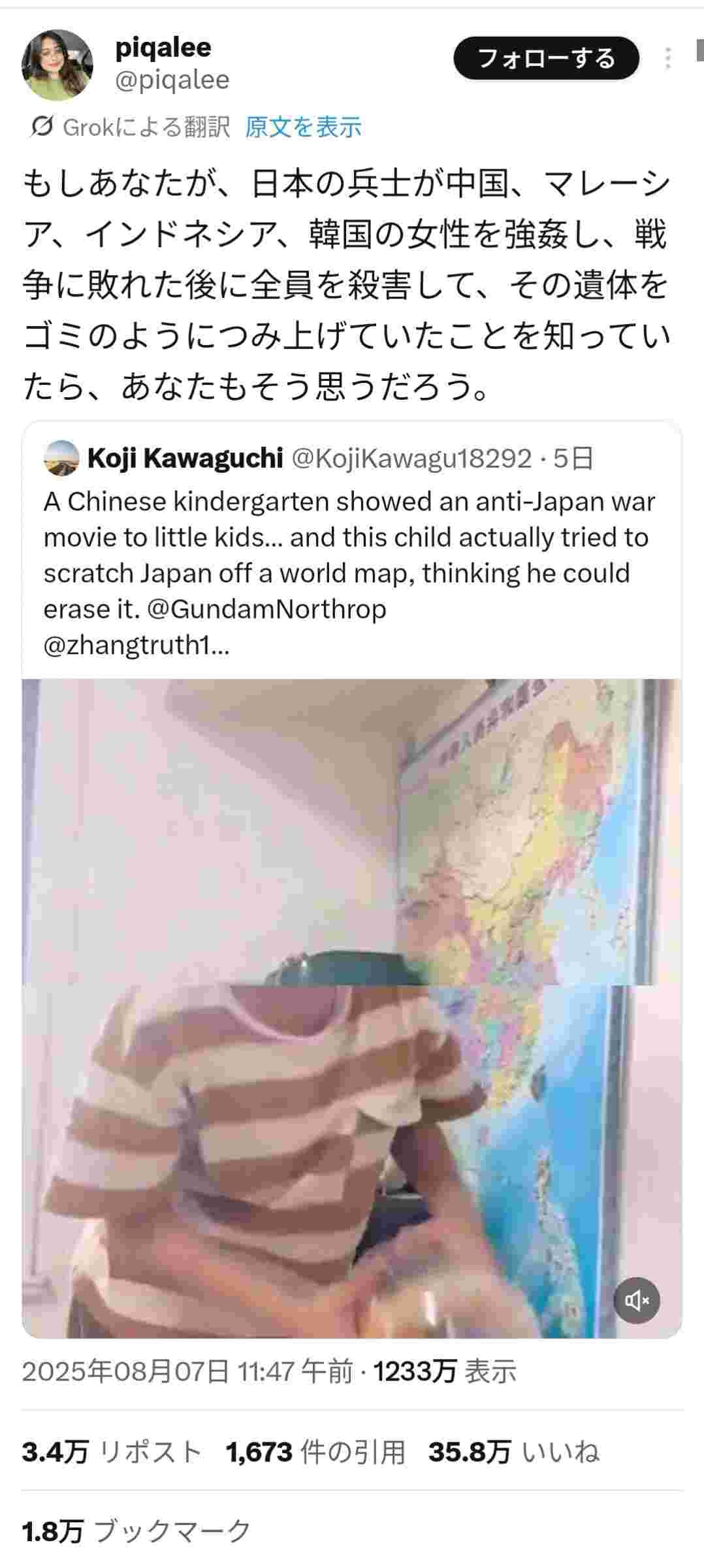 - 日本の戦争犯罪をバラすツイートは30万いいね超え連発