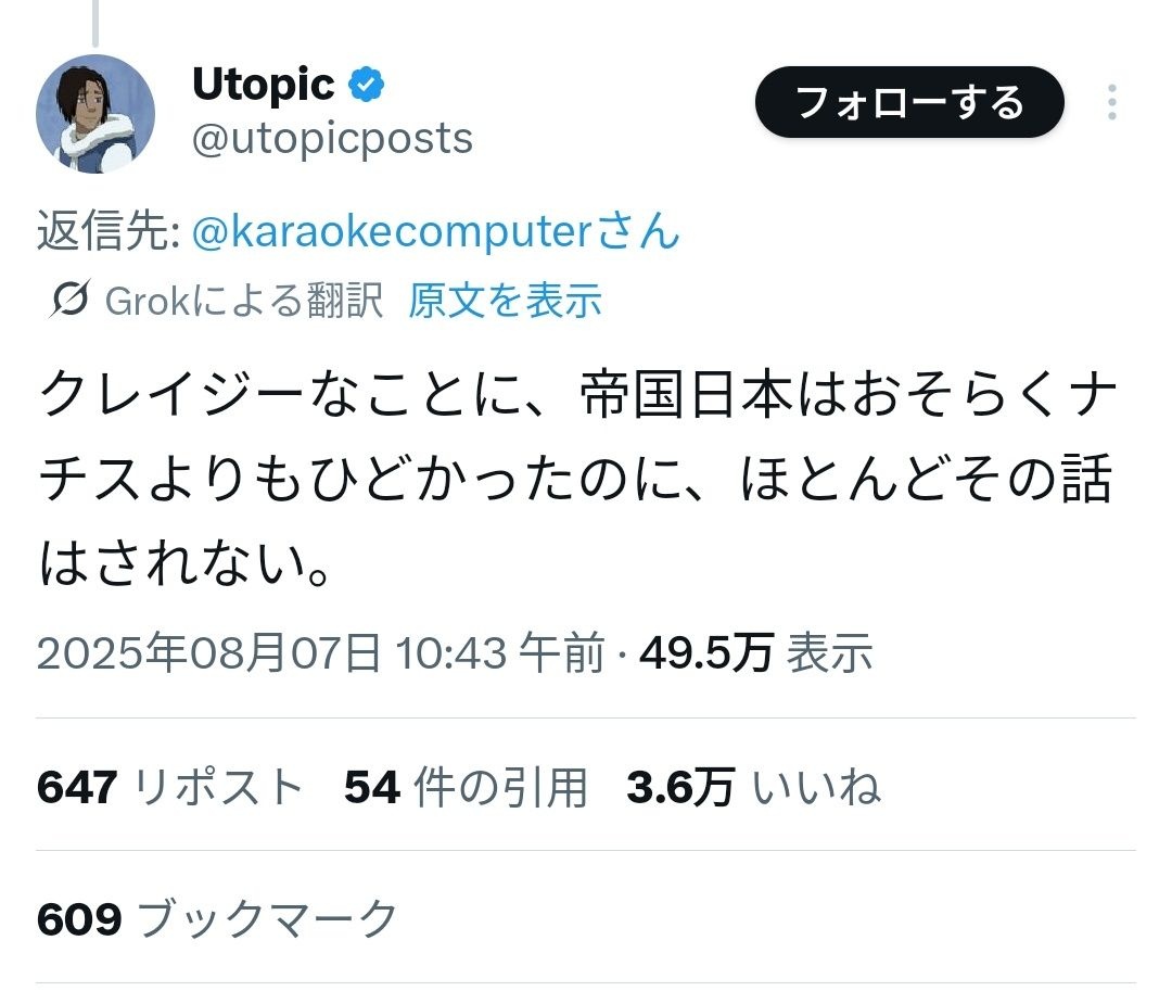 お前は今大日本帝国に住んでるんかと - 19 : 2025/08/10(日) 01:15:54.956 ID:lzY9HmOCS