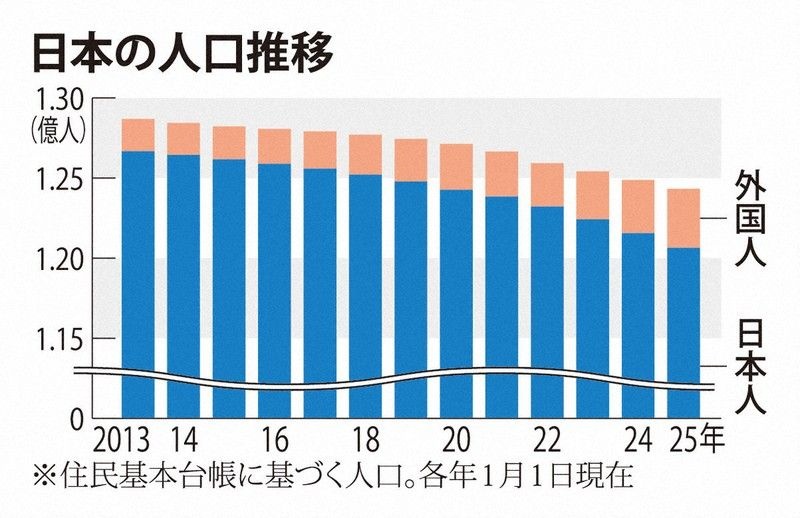 日本人、減少数・率が過去最大 外国人367万人 人口動態調査 | 毎日新聞総務省は6日、住民基本台帳に基づく2025年1月1日現在の人口動態調査を発表した。国内の日本人の人口は1億2065万3227人で、前年に比べ90万8574人(0・75%)減った。減少は16年連続で、減少数、減少率ともに1968年の調査開始以降で最大だった。一方、外国人の人口は過去最多の367万74mainichi.jp - 2 : 2025/08/10(日) 09:34:16.16 ID:0WzBylnh0