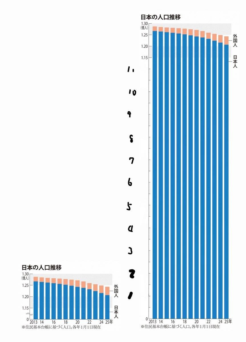 - 日本人の人口減少と外国人の増加の関係を示したいんだから最初のグラフで問題ないだろ
