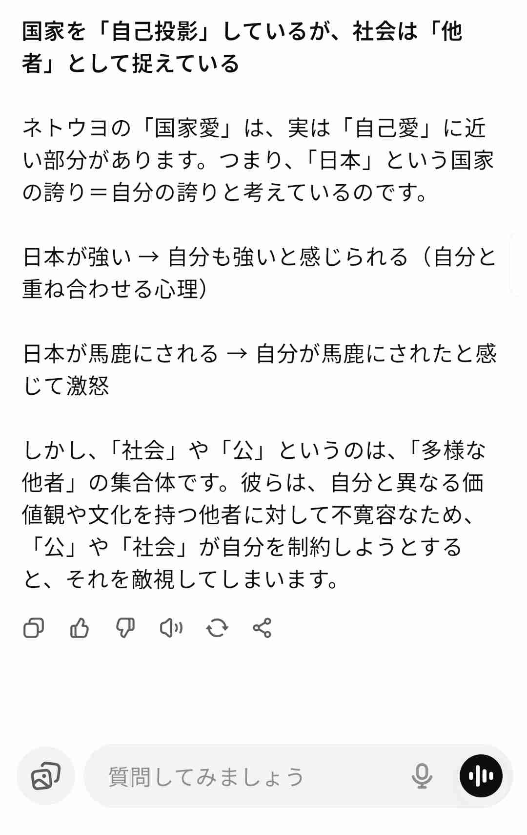 - ネトウヨさんの多くは立場的に社会から虐げられてそうだしな(´・ω・`)
